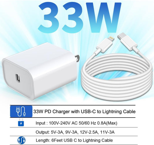 for iPhone Fast Charger, 33W USB C PD Wall Charger Block Plug with[MFi Certified]6ft Type C to Lightning Cable Quick Charging Data Sync Cord for iPhone14 13 12 11 Pro Max Mini Xs Xr iPad Air