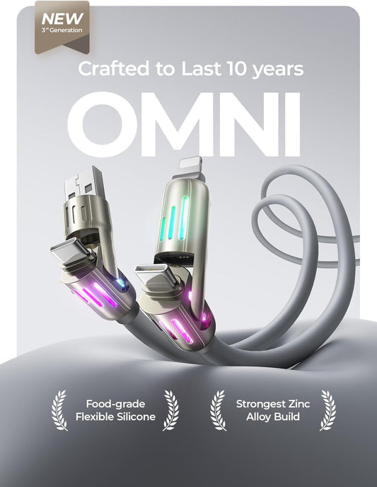 LISEN USB C to Lightning Cable, 240W 4 in 1 Charging Cable 6.6FT, Chubby USB A/C to C/Lightning with Light for iPhone Air 17 16 15 14 Pro/MacBook/iPad/Samsung/Switch 2, Multi Chargers for All Devices