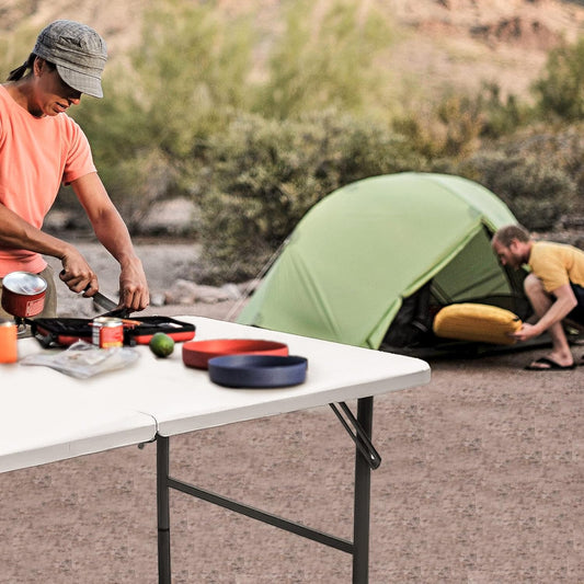Folding Table 6ft - Heavy Duty Plastic Table with Handle, Foldable & Portable, Fold-in-Half Utility Tables for Outdoor, Dining, Wedding, Events, Indoor, Picnic, Camping, Party (White)