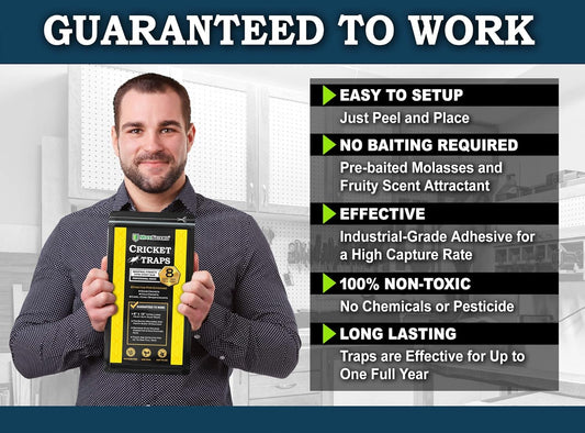 MaxGuard Extra Large Cricket Traps (8 Traps) | Non-Toxic Extra Sticky Glue Board Pre-Baited Cricket Attractant Trap & Kill House Crickets, Insects, Spiders, Bugs