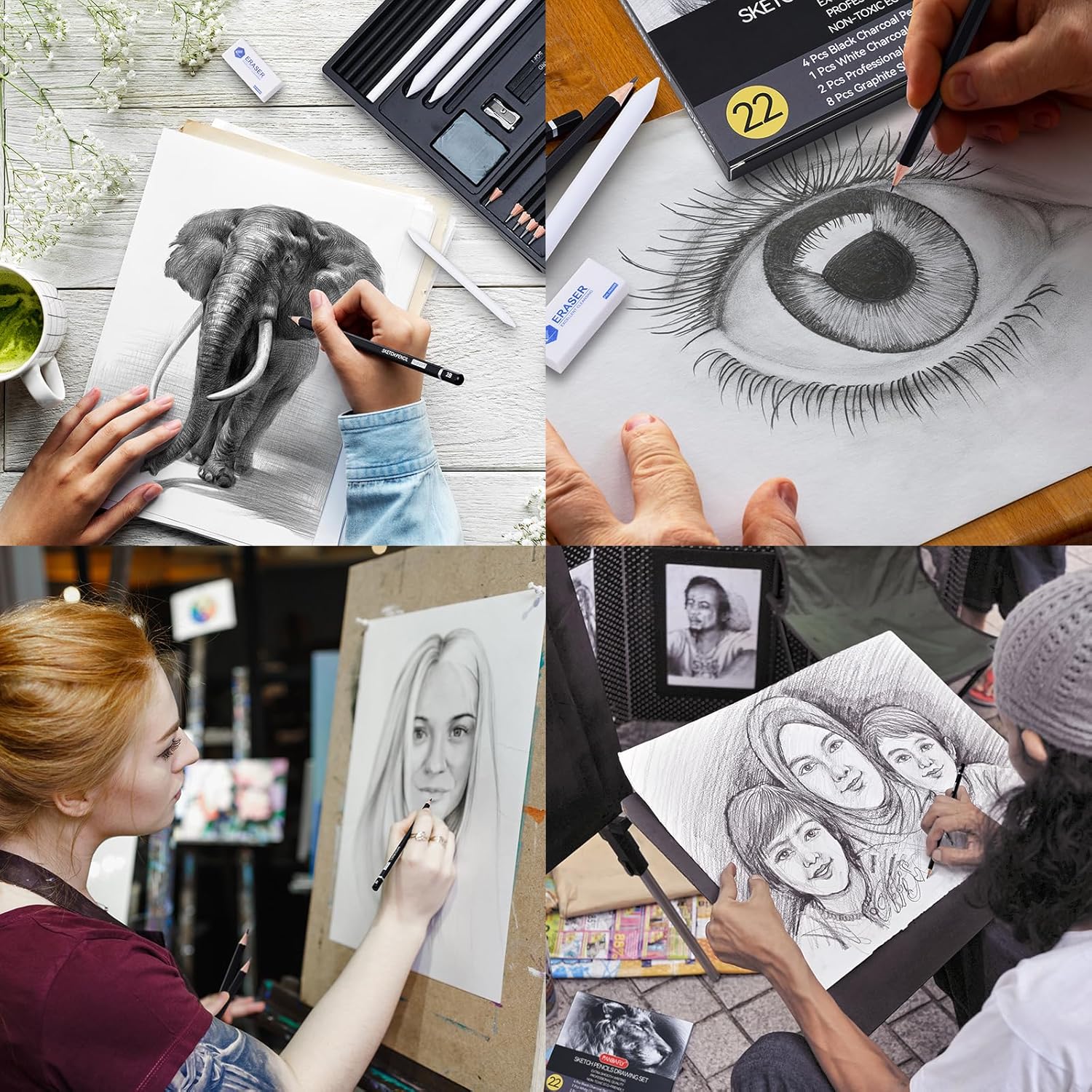 - PANDAFLY Drawing Sketching Pencil Set, 22 Piece Pro Art Pencil Kit - Graphite Pencils (12B-2H), Black and White Charcoal Pencils, Charcoal Sticks, Stumps, Eraser, Sharpeners