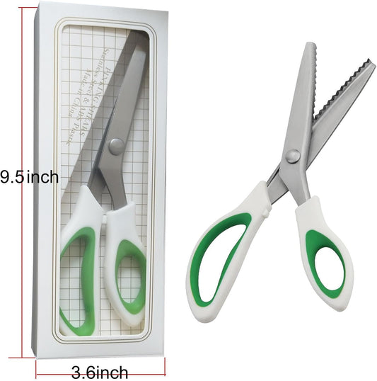 Green Pinking Shears Comfort Grips Crafts Zig Zag Cut Sewing Scissors,Professional Handheld Dressmaking