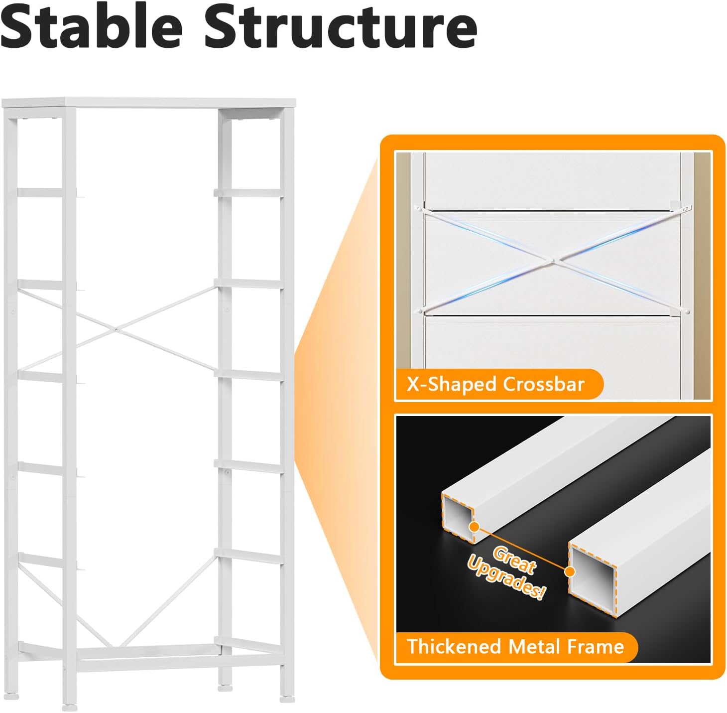 - Reinforced and Sturdy End Table Our clothing storage stands out with its sturdy construction, featuring a reinforced metal frame. The back of the bedside table is equipped with more reinforced X-type crossbar, which offers high strength support and ensure years of use. Adjustable feet can adapt to uneven ground, will make it more stable.