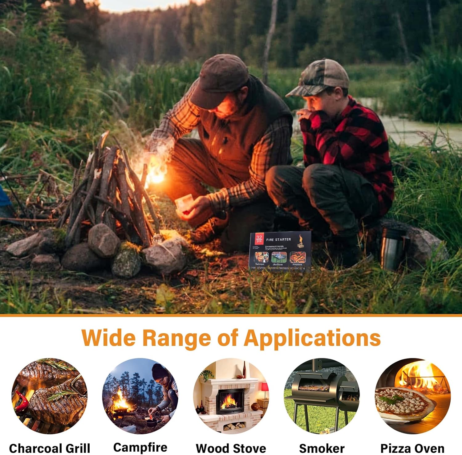 - STOCK UP & SAVE: Start with our 32-piece beginner pack or upgrade to 64, 128, or 160-piece options. Larger sizes offer longer burning times, better ignition, and more value—ensuring you're ready for any adventure