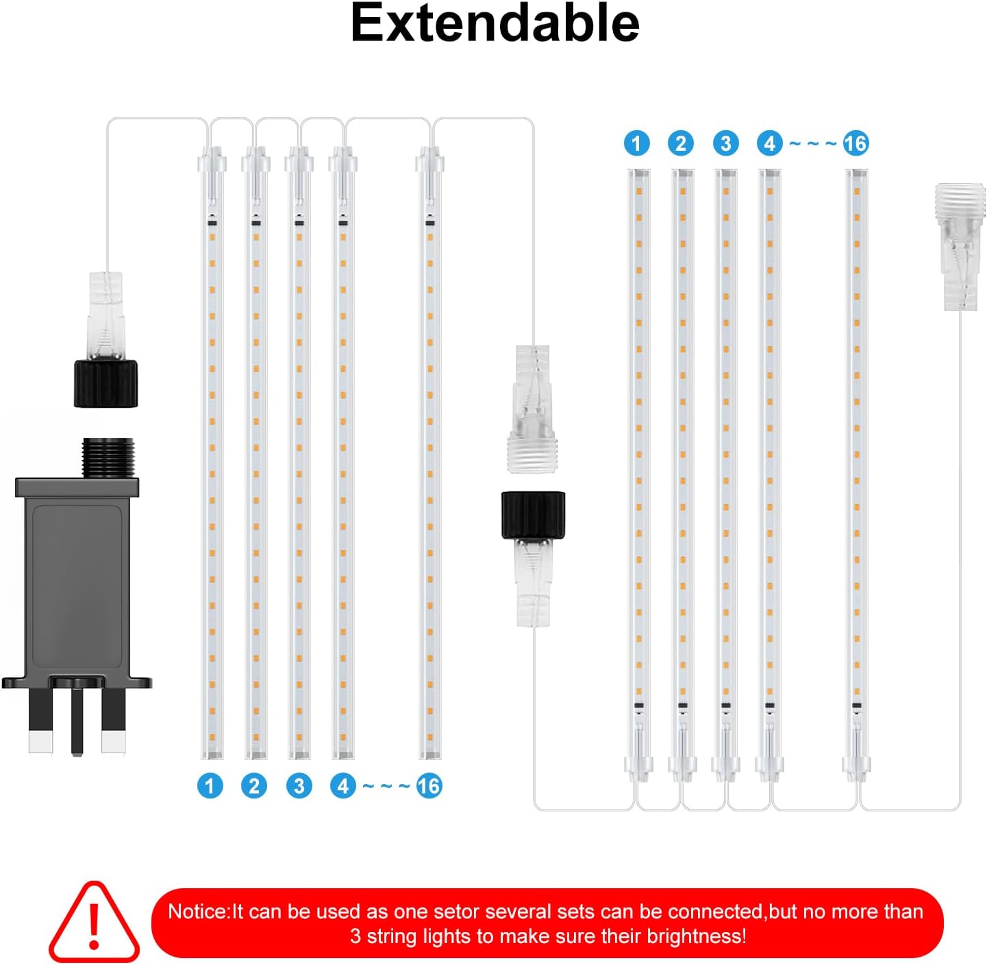 - Brighter And Better Choice: Comprised Of 16 Tubes (Equivalent to Two Sets Of 8 Tubes) And 576 Leds, This Light String Provides 360-Degree Illumination. Each Tube Measures 40 Cm, Offering Brighter, Longer-Lasting Light with More Led Beads. It’s An Affordable and Practical Option for the Perfect Icicle Christmas Lights Outdoor Effect in Your Outdoor Christmas Decorations.