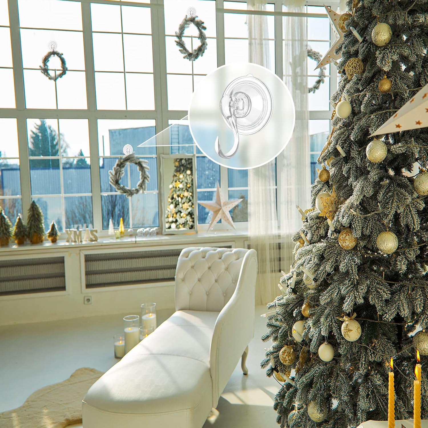 - Easy Installation: Installation is a breeze; no use of any tools, just clean the smooth surface with coming wipes; simply lift the hook into an upright position; press the suction cup firmly to squeeze air out; then click the hook down to finish installation; provides a secure and hassle-free storage solution to hang various decorations