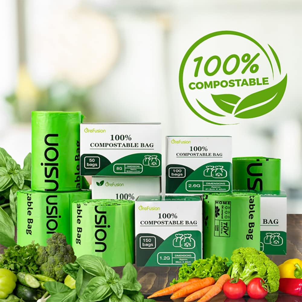- COMPOST BIN KITCHEN&CONTROLS UNDESIRED ODORS We had updated the strong compost bags. Small with a unique high-density blend to prevent tears and to provide exceptional durability for even the heavier of waste loads. The green bags are sturdy, tear resistant, have leak-proof seals. The feature of Refusion small compost bags fights nasty odors to keep your kitchen bin smelling fresh. It is convenient to cover your family several rooms for easy access and enough amount to last for a great while