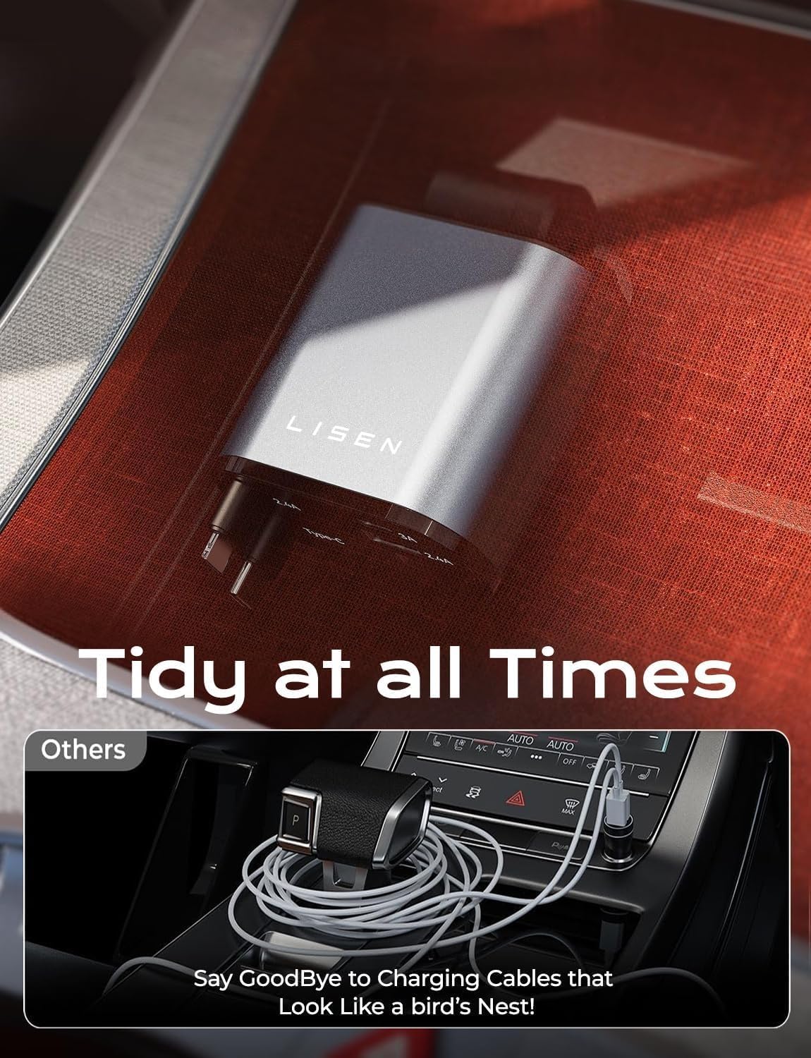 LISEN Retractable Car Charger, 69W USB C Car Accessories Adapter for iPhone 16 USB C Charger Fast Charging, Fathers Day for Gifts, Travel Essentials Gifts for Women Men, for iPhone 16 15 14 13 12
