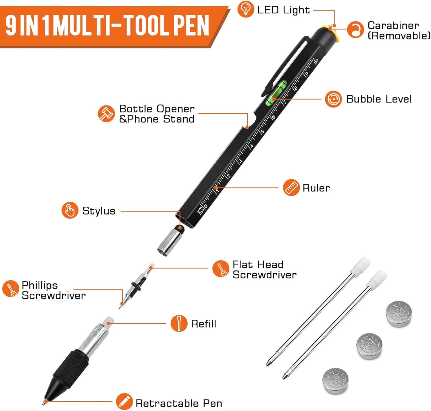 - Gifts for Dad: This 9 in 1 multitool pen can be as gifts for men who have everything, men women who like DIY design. It is a cool gadget for men dad husband to daily use, suitable for stocking stuffers for men adults husband as an unique gift.