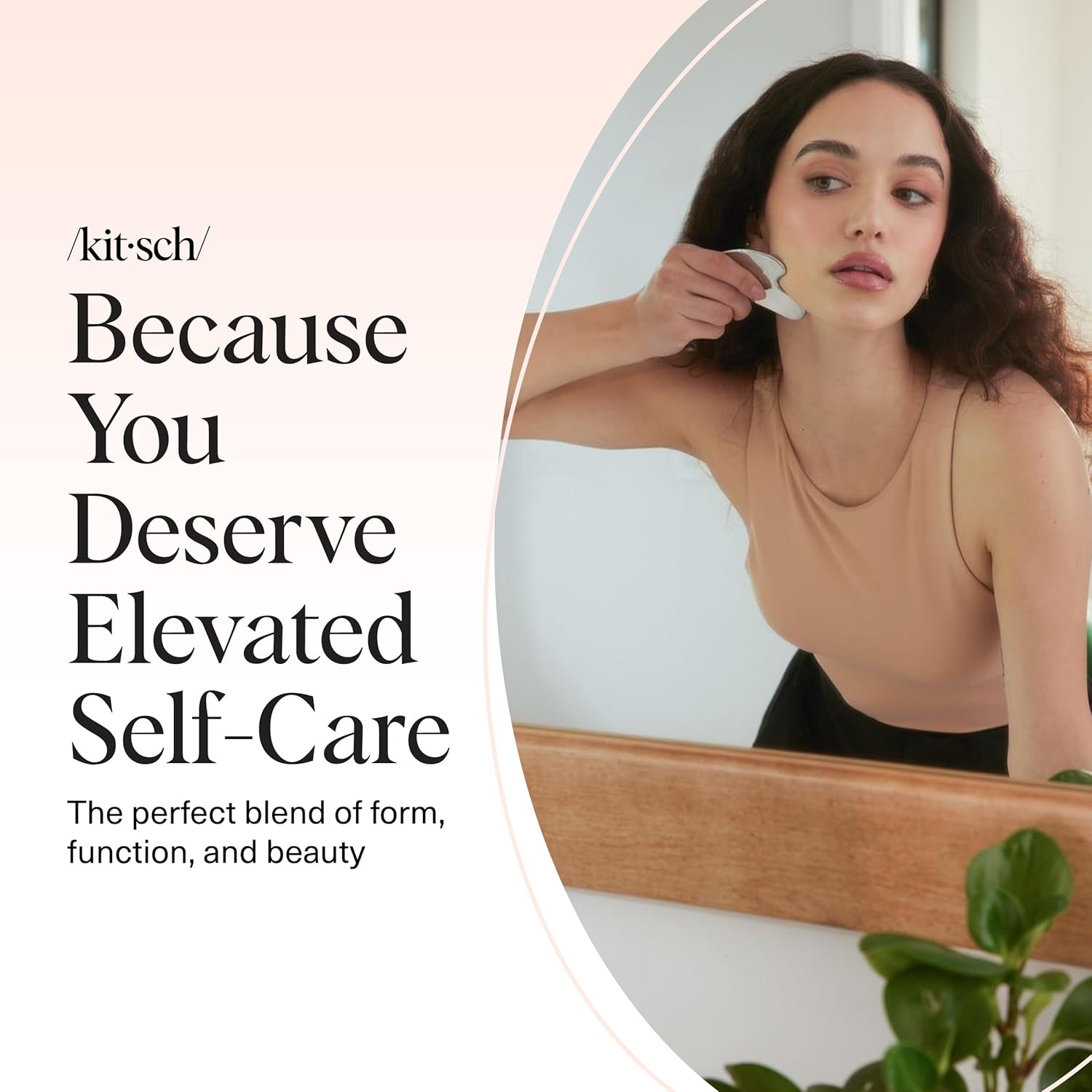 Kitsch Stainless Steel Gua Sha Facial Tools - Lymphatic Drainage Massager for Face & Chin, Jawline Shaper, Double Chin Reducer, Guasha Tool for Face Massager, Skin Care Tools Gifts for Women - Silver