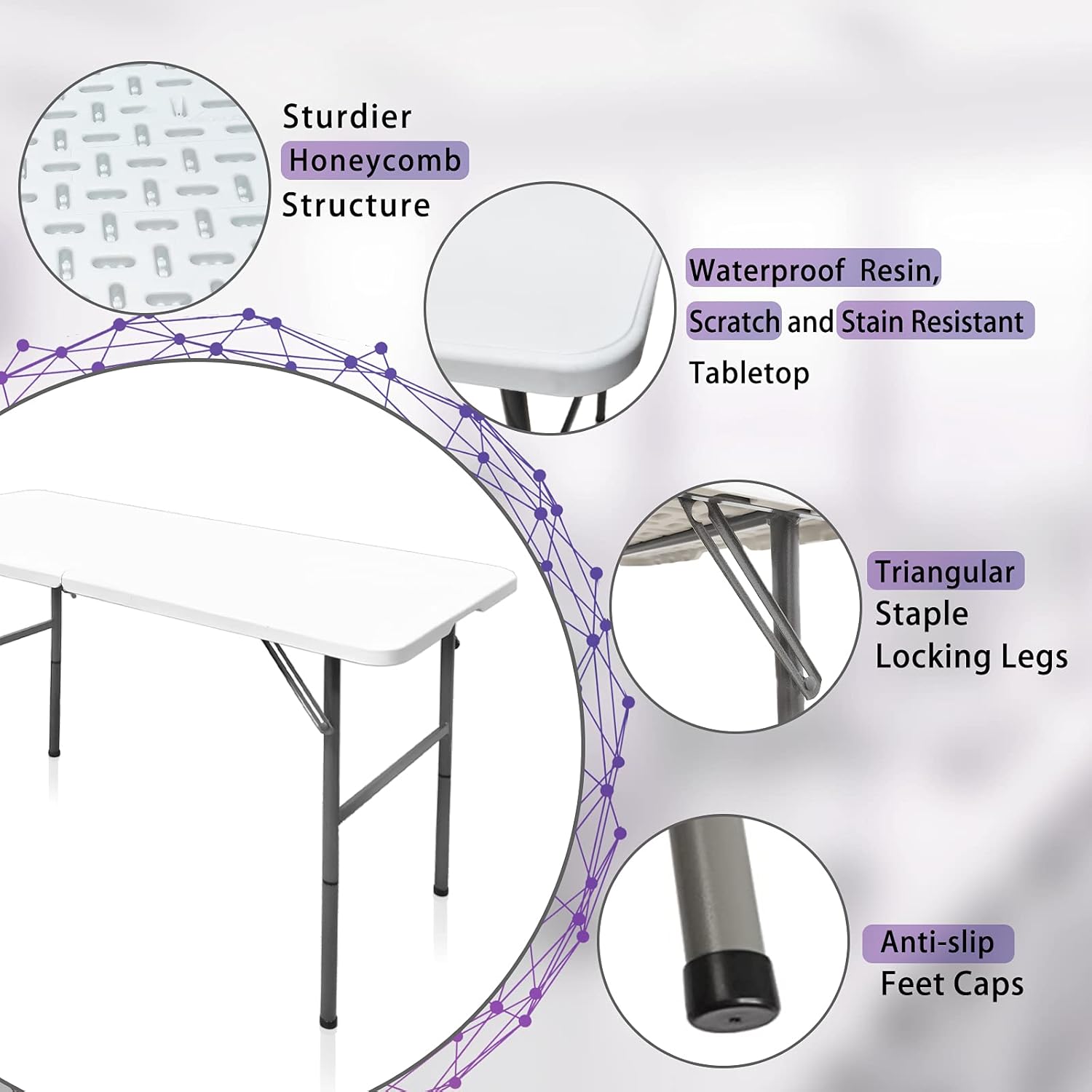 - Heavy-duty Tabletop: Constructed of premium-quality plastic and thickened metal tube, it has superior strength and durability than other outdoor plastic table. Weight Capacity: 330 lbs.