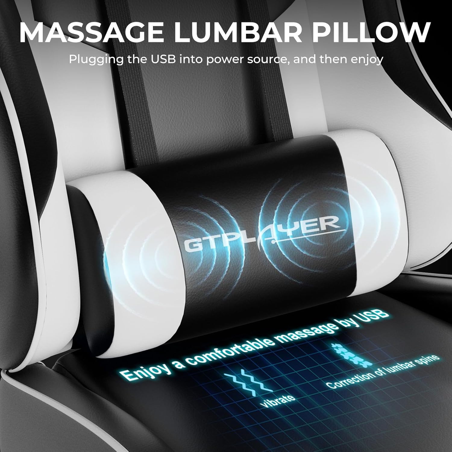 - GTPLAYER Gaming Chair, Computer Chair with Footrest and Lumbar Support, Height Adjustable Game Chair with 360°-Swivel Seat and Headrest and for Office or Gaming (White)