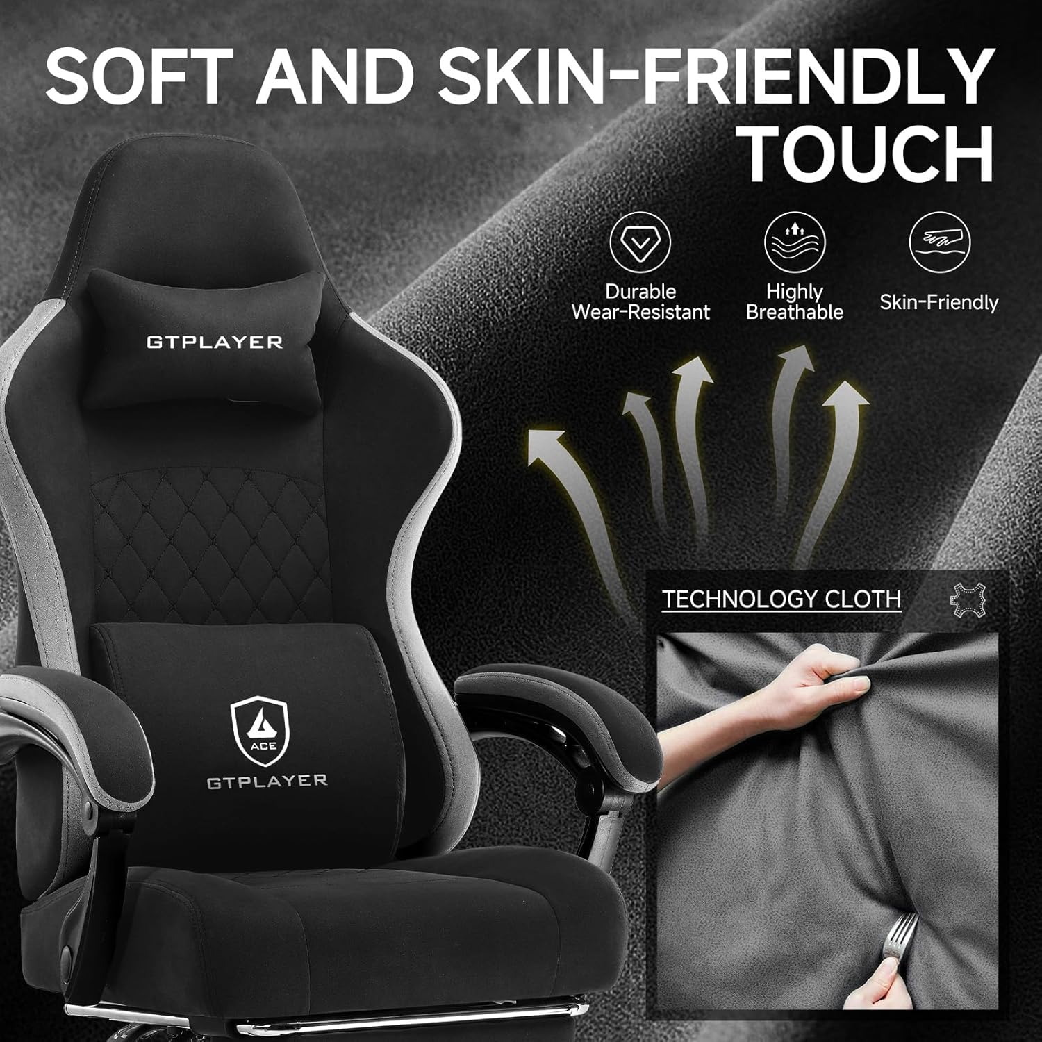 - GTPLAYER Office Chair, Gaming Computer Desk Fabric Chair with Footrest, High Back Ergonomic Office Chair with Pocket Spring Lumbar Support and Linkage Armrests Adjustable Height Swivel for Home Task