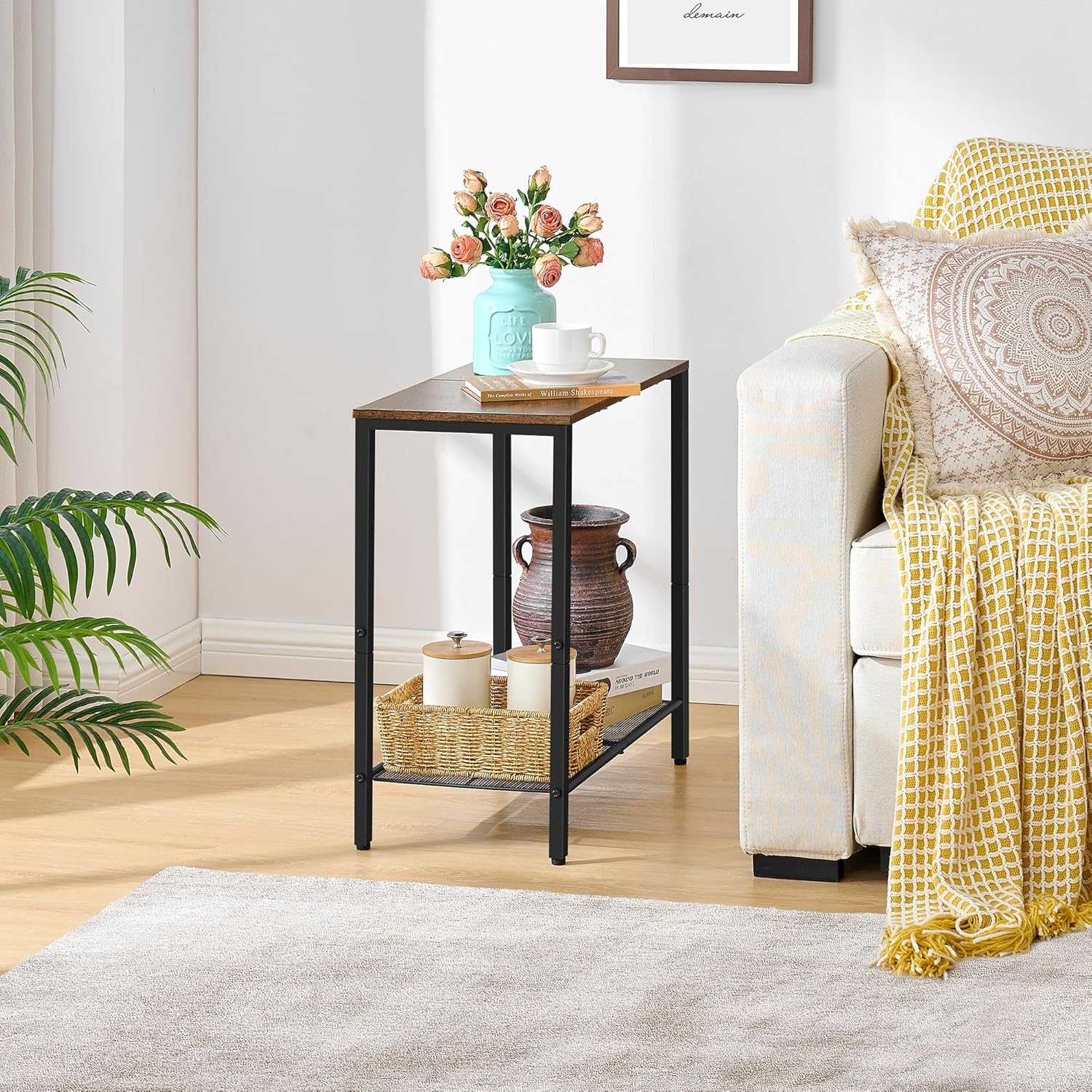 - Hoctieon 2 Tier End Table, Sofa Side Table, Narrow Side Table with Storage, Slim Nightstand for Small Spaces, Metal Frame, for Living Room, Bedroom, Sofa Couch, Hall, Rustic Brown