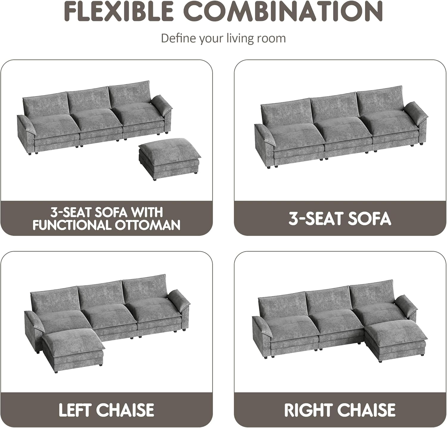 - Homall 119" Modular Sectional Sofa, L Shaped Sofa Couch with Reversible Ottoman, DIY Combination Chenille Deep 3-Seat Cloud Couch for Living Room, Apartment (Light Grey, L Shaped Sofa)