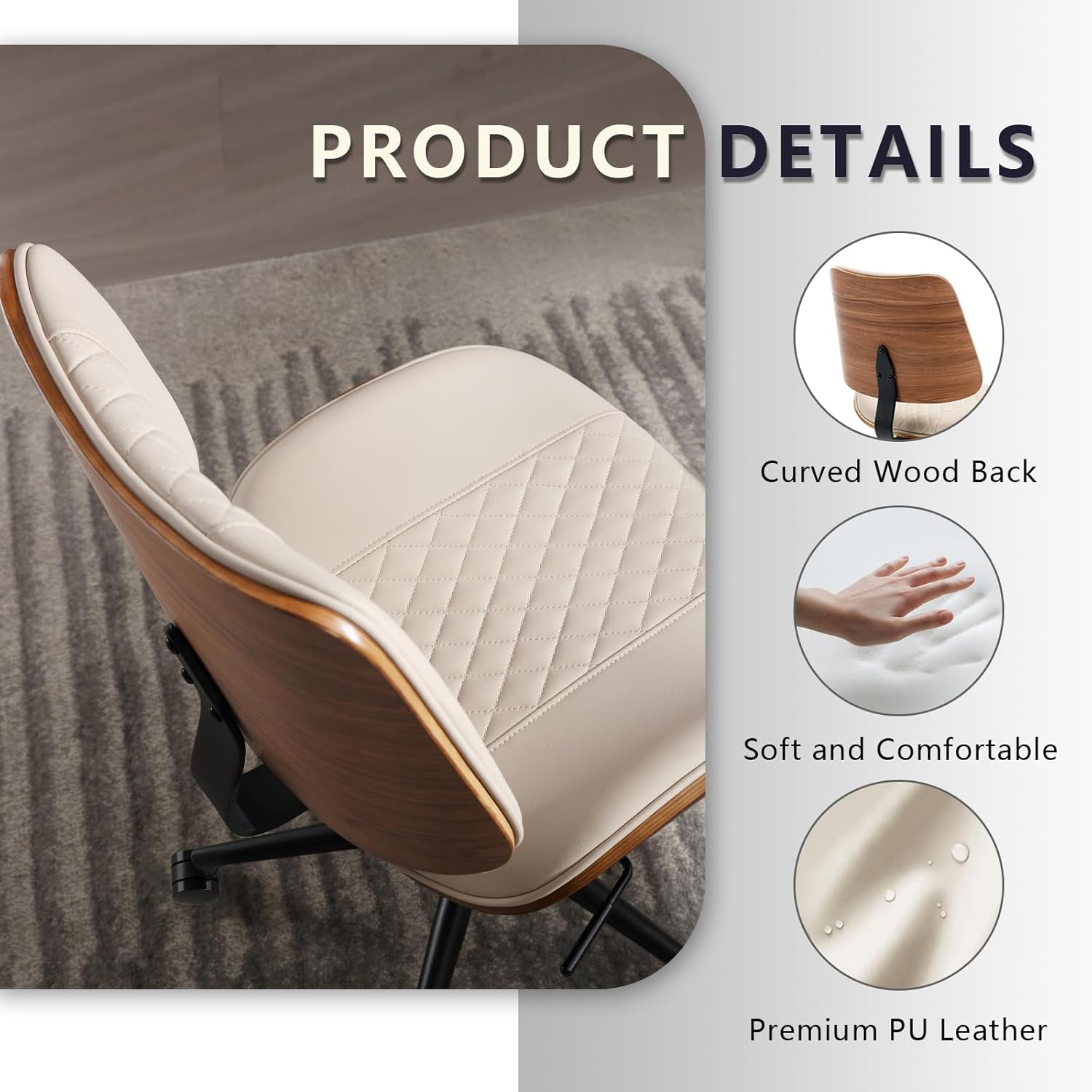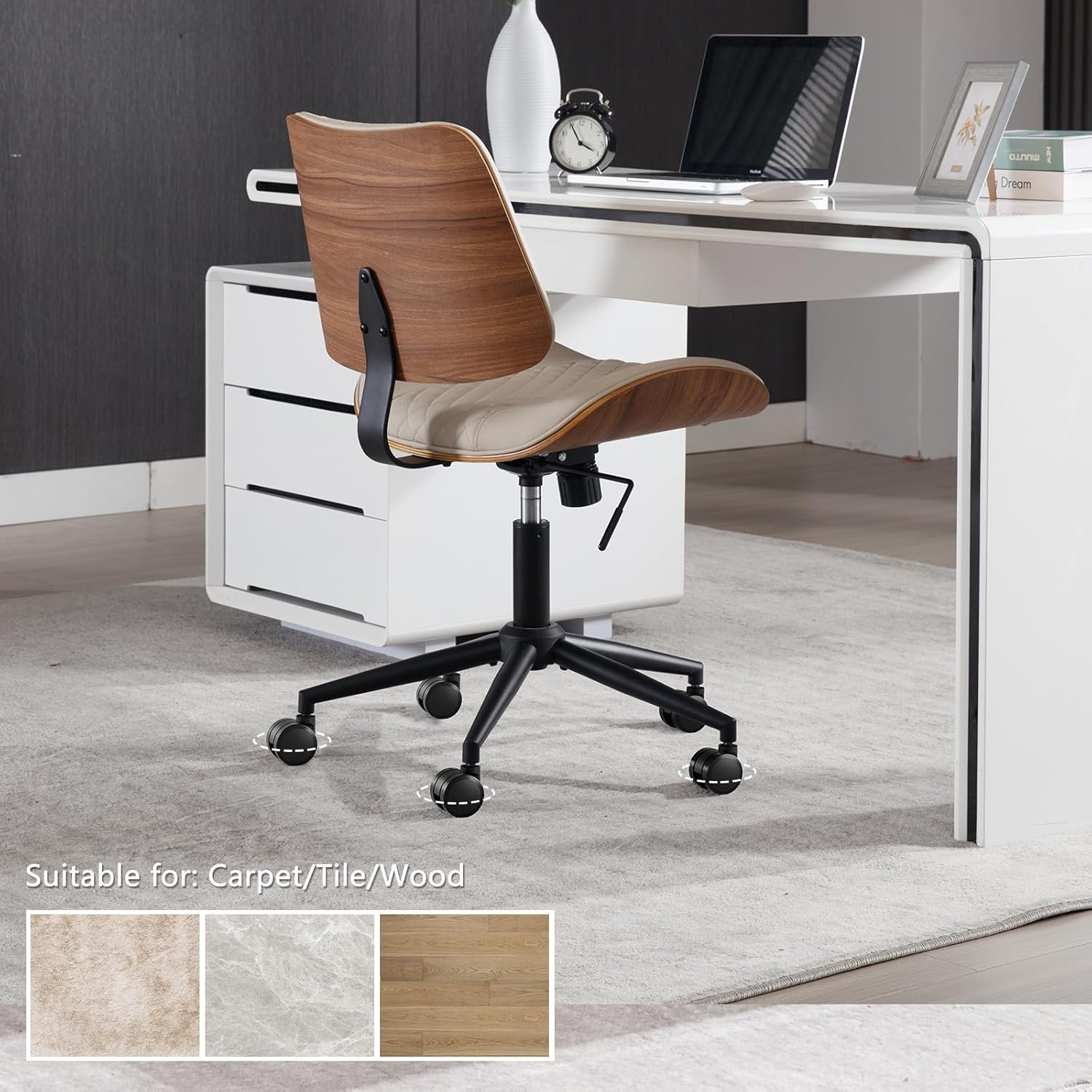 - Home Office Chair No Arms with Wheels, Adjustable Height Small Desk Chair, PU Leather Mid Back 360 Swivel Computer Chair, Armless Modern Walnut Chair for Office, Reading Meeting Room(Beige)
