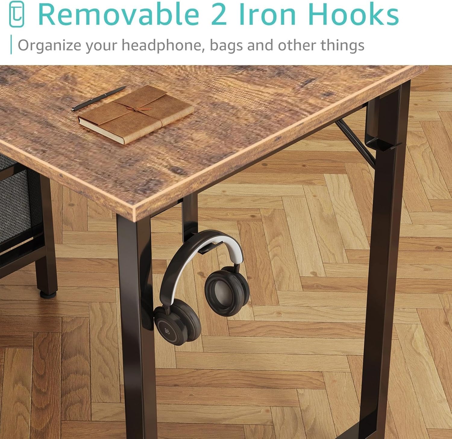 - Lufeiya 40 inch Computer Desk with 4 Fabric Drawers, Kids Student Reversible Small Desks for Home Office Small Space, Work PC Desk Table for Bedroom, Rustic Brown