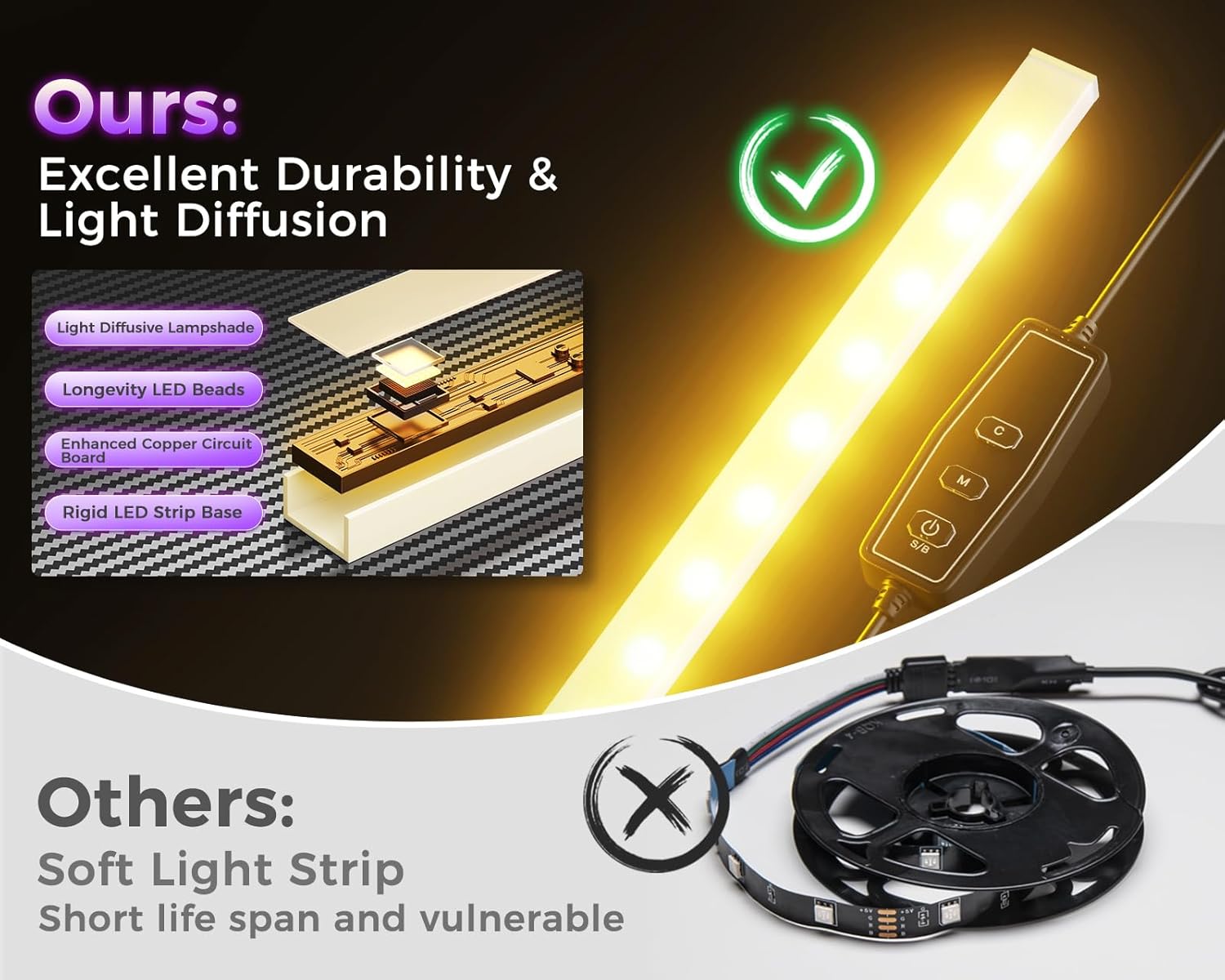- L Gaming Desk with Adjustable LED Lighting The gaming desk comes with an RGB LED strip with 10 color presets, 8 brightness grades, 10 dynamic modes, and a memory function with switching controls. It is available for a variety of room styles and functional requirements and can be used in multiple scenarios, such as a bedroom, living room, study room, gaming room, etc.