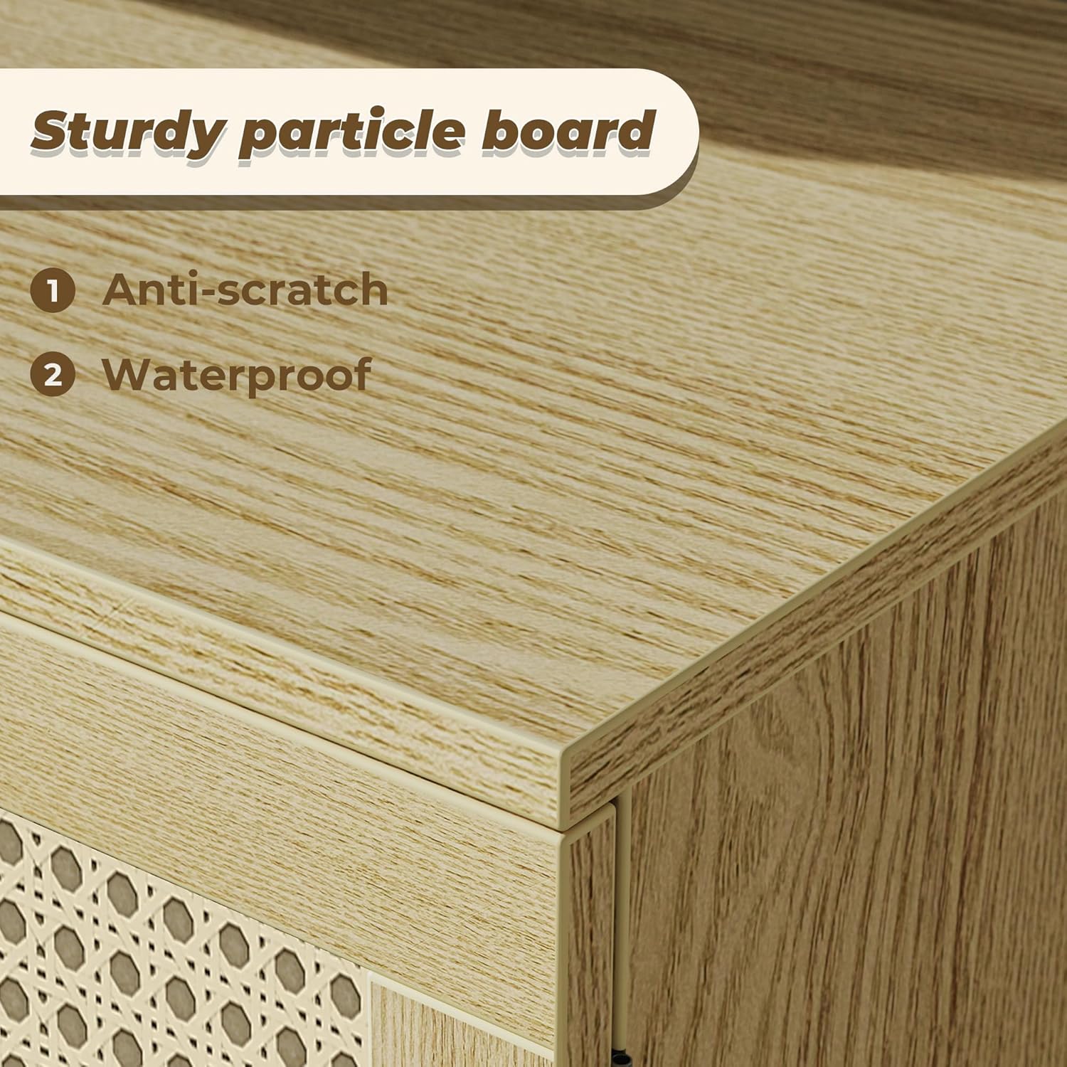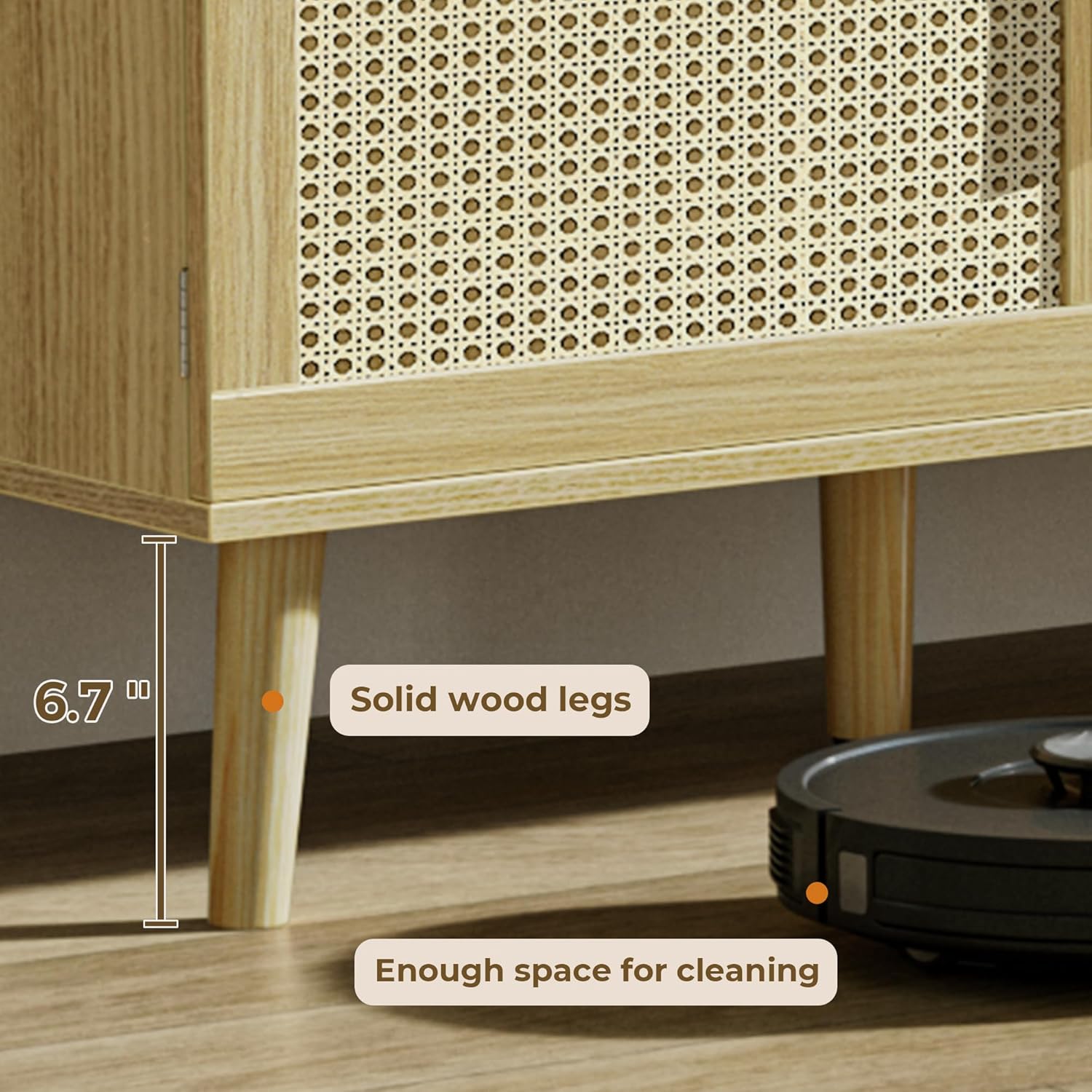 - Long-lasting Support: 6 solid wood feet give this rattan tv console a strong support. And the 2 adjustable feet can be adjusted to keep balance on uneven floors. The overall body adopts sturdy P2 particleboard, so this TV stand is a long-time investment