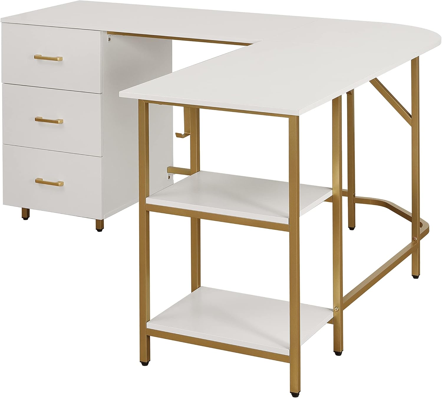 - Three White pullout storage drawers for keeping office supplies within reach