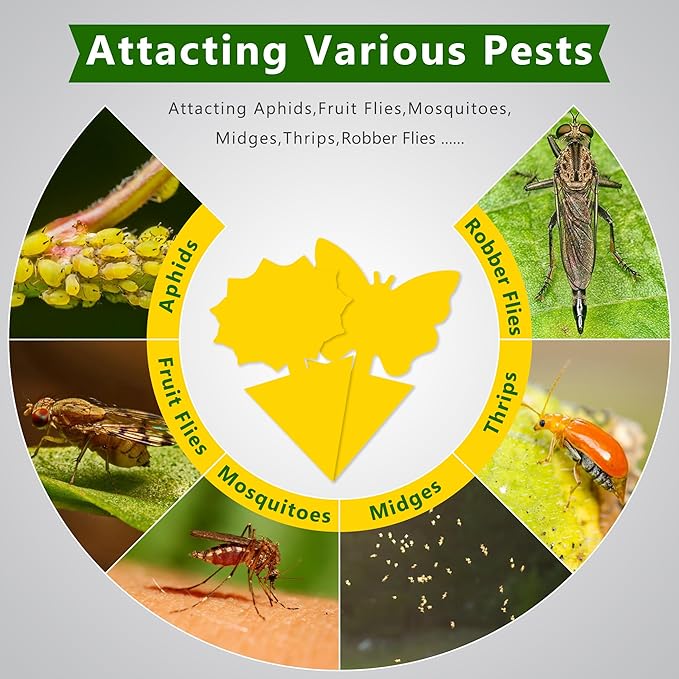 - Fruit Fly Traps: Fruit-fly and fungus gnat sticky traps are designed to effectively control and monitor populations of these nuisance pests. The traps utilize a sticky adhesive surface to catch and immobilize flies and gnats, capturing flying insects upon contact, preventing them from further infesting your home or garden.