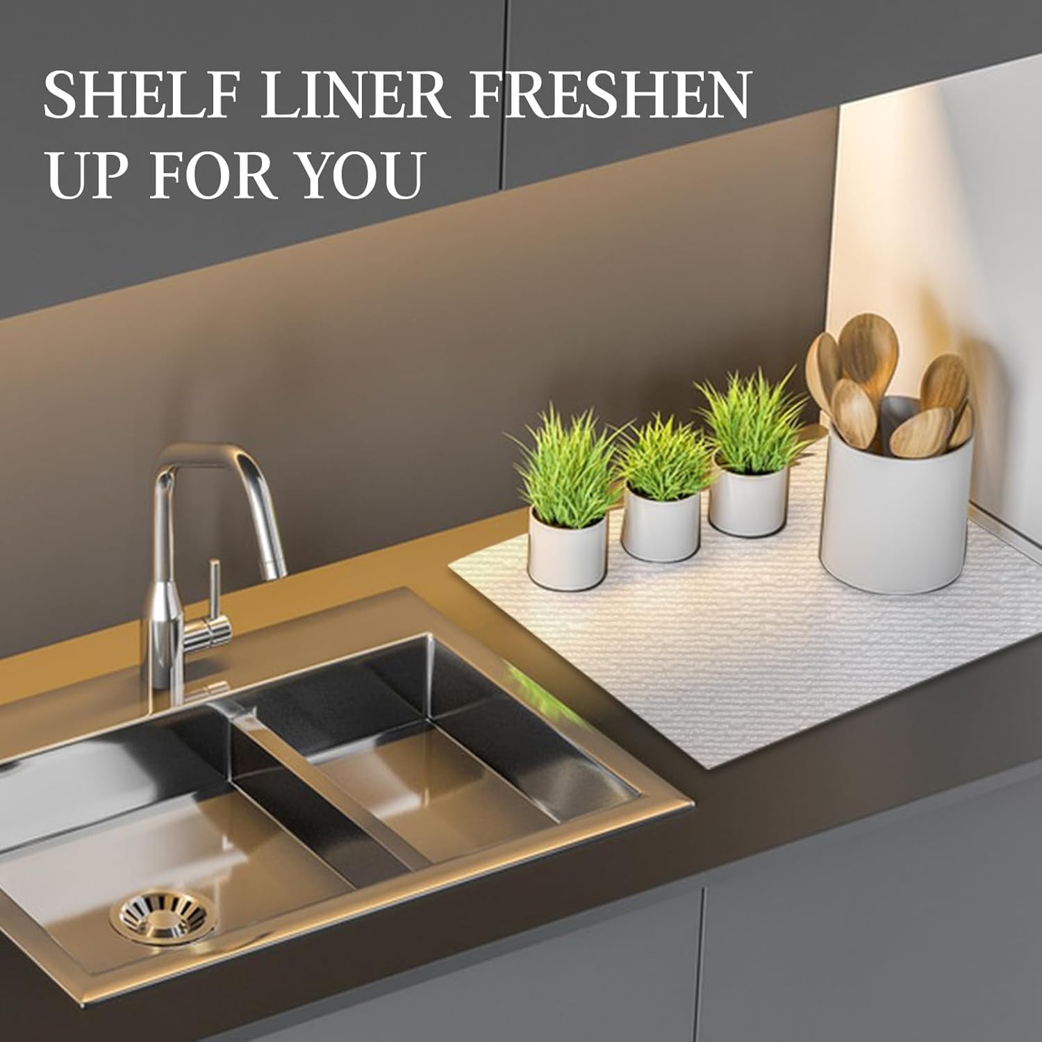 - Kitchen Cabinet Liner: The white waterproof cabinet liner is designed to provide a secure grip on various surfaces. The nonslip cabinet liner prevents items from sliding or shifting, ensuring that your belongings stay in place. This feature is particularly useful for organizing kitchen cabinets, drawers, or even in the refrigerator where items tend to move around