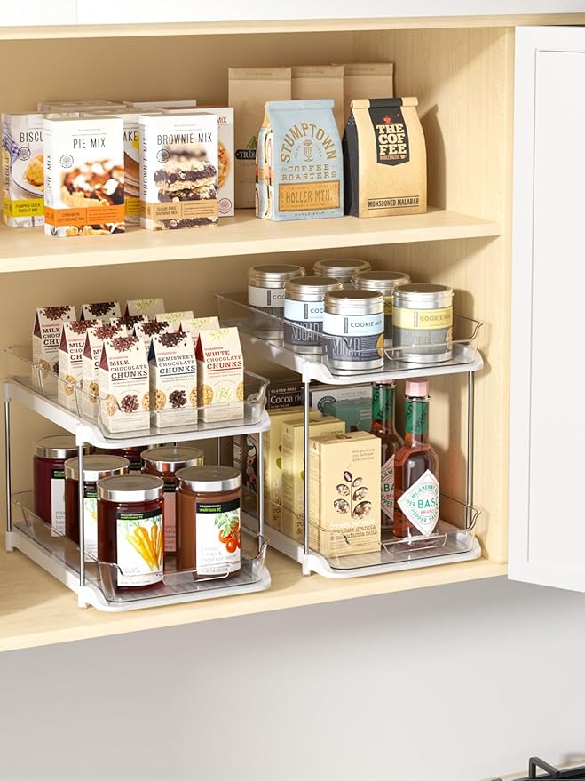 - Delamu 2 Sets of 2-Tier Multi-Purpose Bathroom Under Sink Organizers and Storage, Stackable Kitchen Pantry Organization, Pull Out Medicine Cabinet Organizer with 8 Movable Dividers