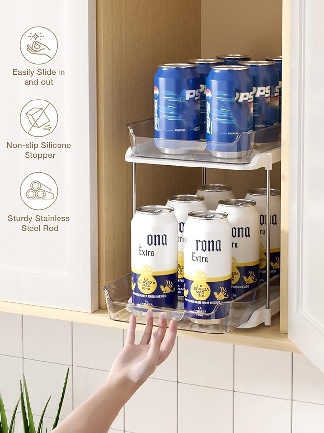 - Stackable Pantry Storage Organizer: What sets this pull out cabinet organizer apart is that you can stack 3 at a time according to space needs, which means it is a must-have space saver! it is very useful for organizing to hold spice jars, medicines bottles, beverages, canned goods, grab-and-go snacks, and even a variety of health/beauty aides, and small items.