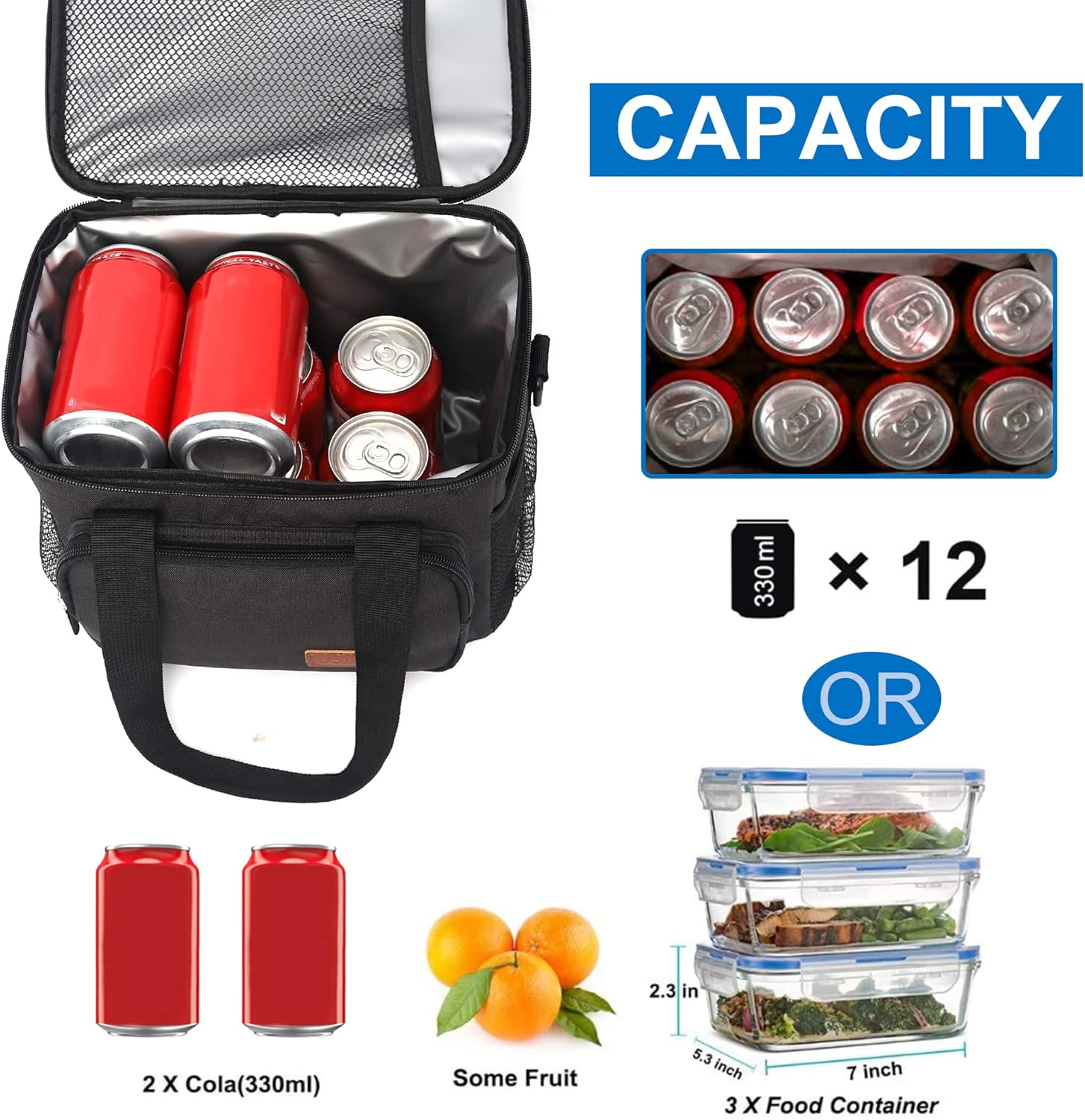 - Femuar Reusable Lunch Box for Men/Women - Insulated Lunch Bag Leakproof Lunchbox for Work Office Picnic Beach - Freezable Lunch Cooler Bag with Adjustable Shoulder Strap - Black