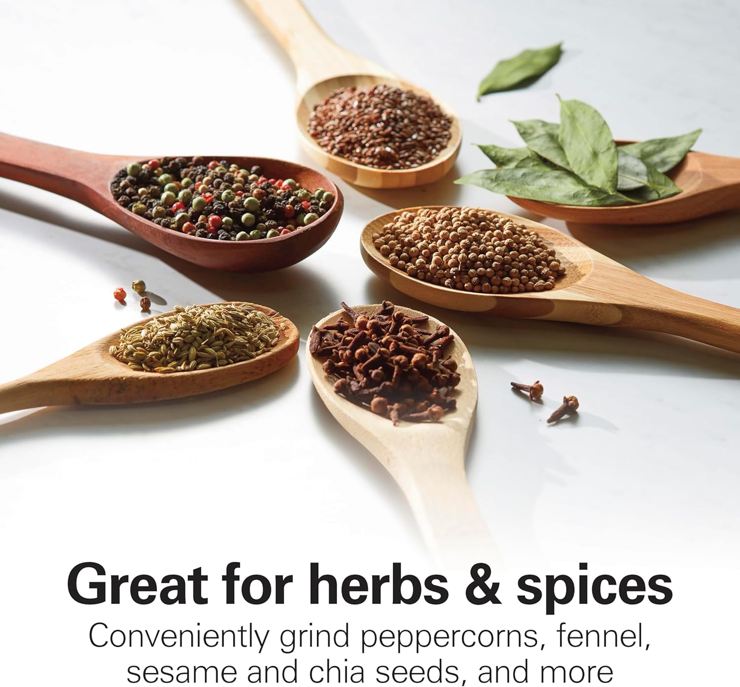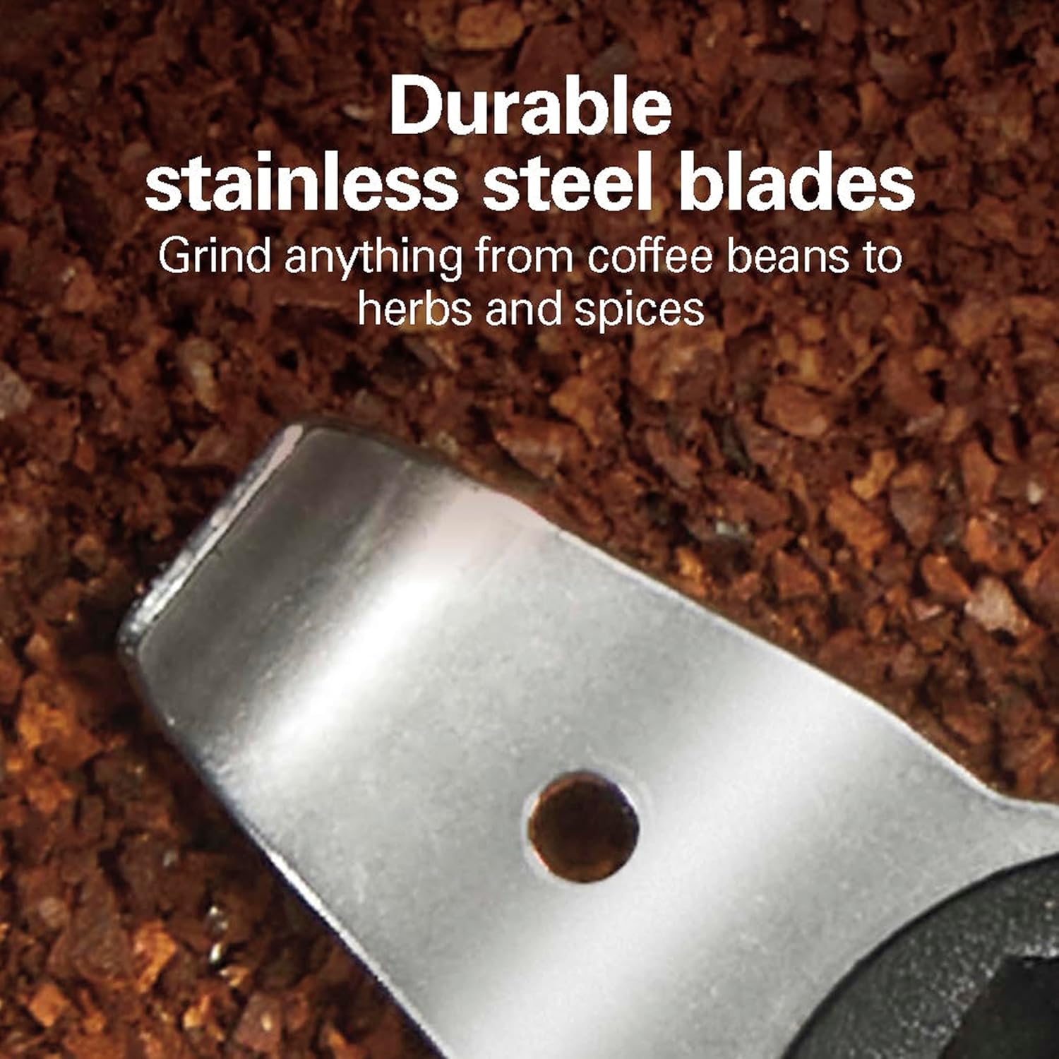 - DURABLE STAINLESS-STEEL BLADES: With the durable stainless-steel blades, this Hamilton Beach coffee grinder makes easy work of grinding everything from coffee beans to herbs and spices.