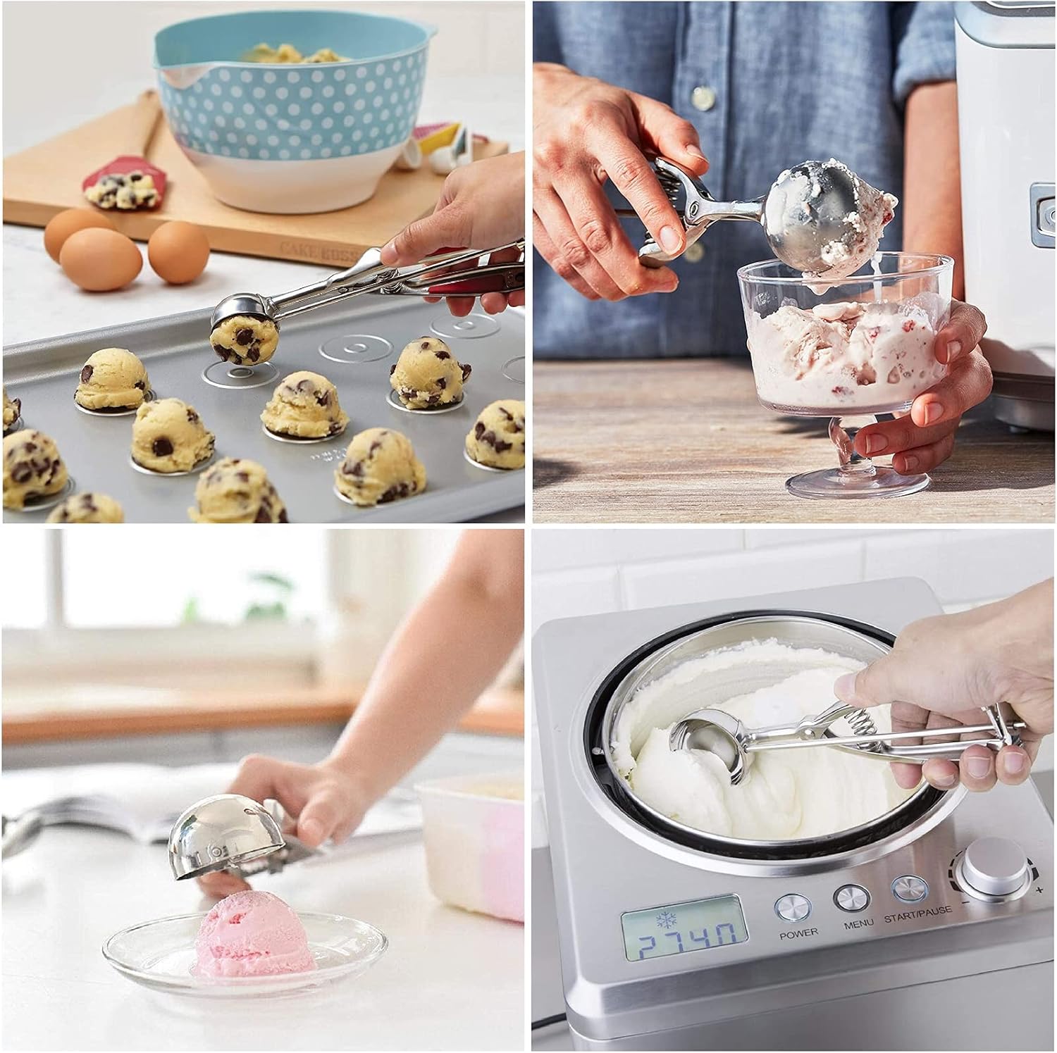 - Ice Cream Scoop, 3Pcs Cookie Scoop Set, Stainless Steel Ice Cream Scooper with Trigger Release, Large/Medium/Small Cookie Scooper for Baking, Cookie Scoops for Baking Set of 3 with Cookie Dough Scoop…