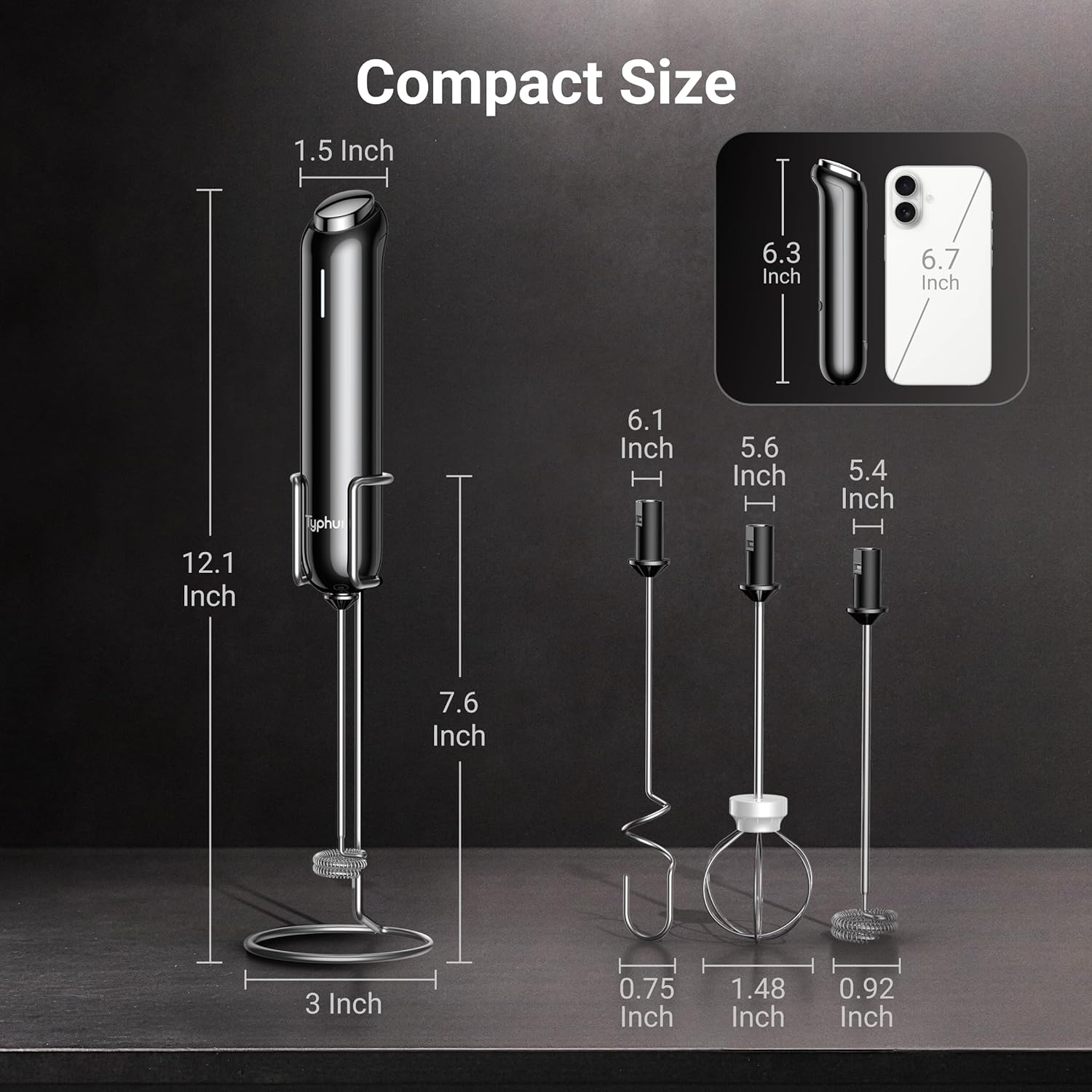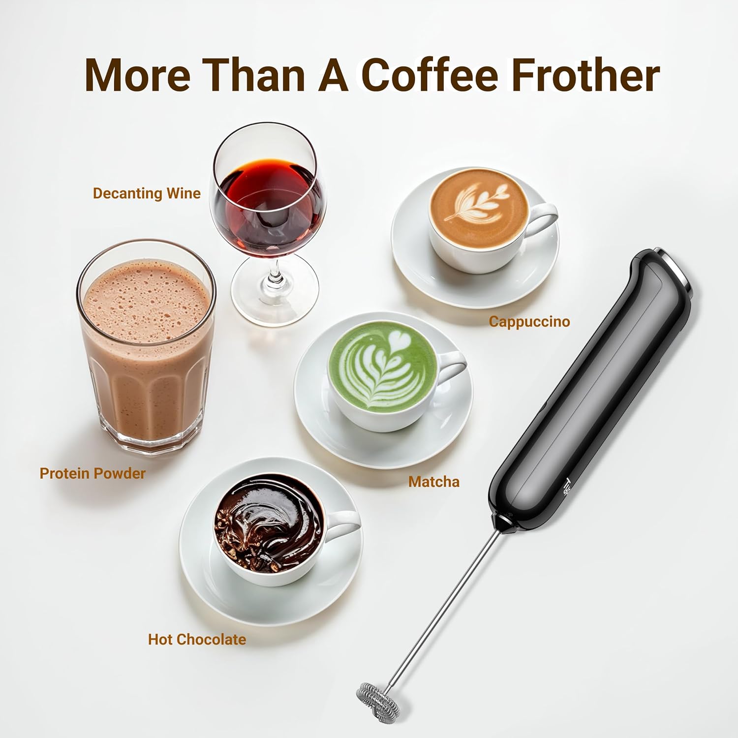 - Battery That Lasts & Lasts: With a powerful 1500mAh battery, enjoy up to a whole year of daily frothing (3 times a day) on just 3 charges! USB-C fast-charging enables cordless freedom—ideal for kitchens, offices, or travel—eliminating disposable battery dependencies.