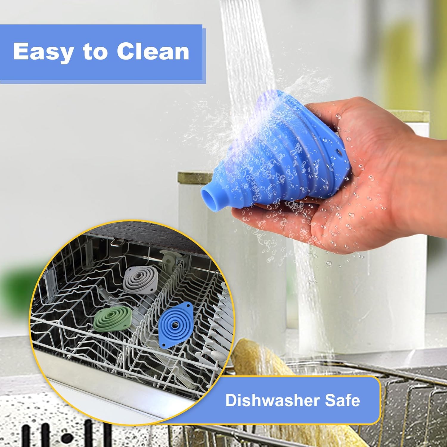 - Portable and Space-Saving:With a foldable design, it can be expanded for use. You can fold and store the silicone funnel. After storage, you can hang it on the wall or keep it in a drawer.