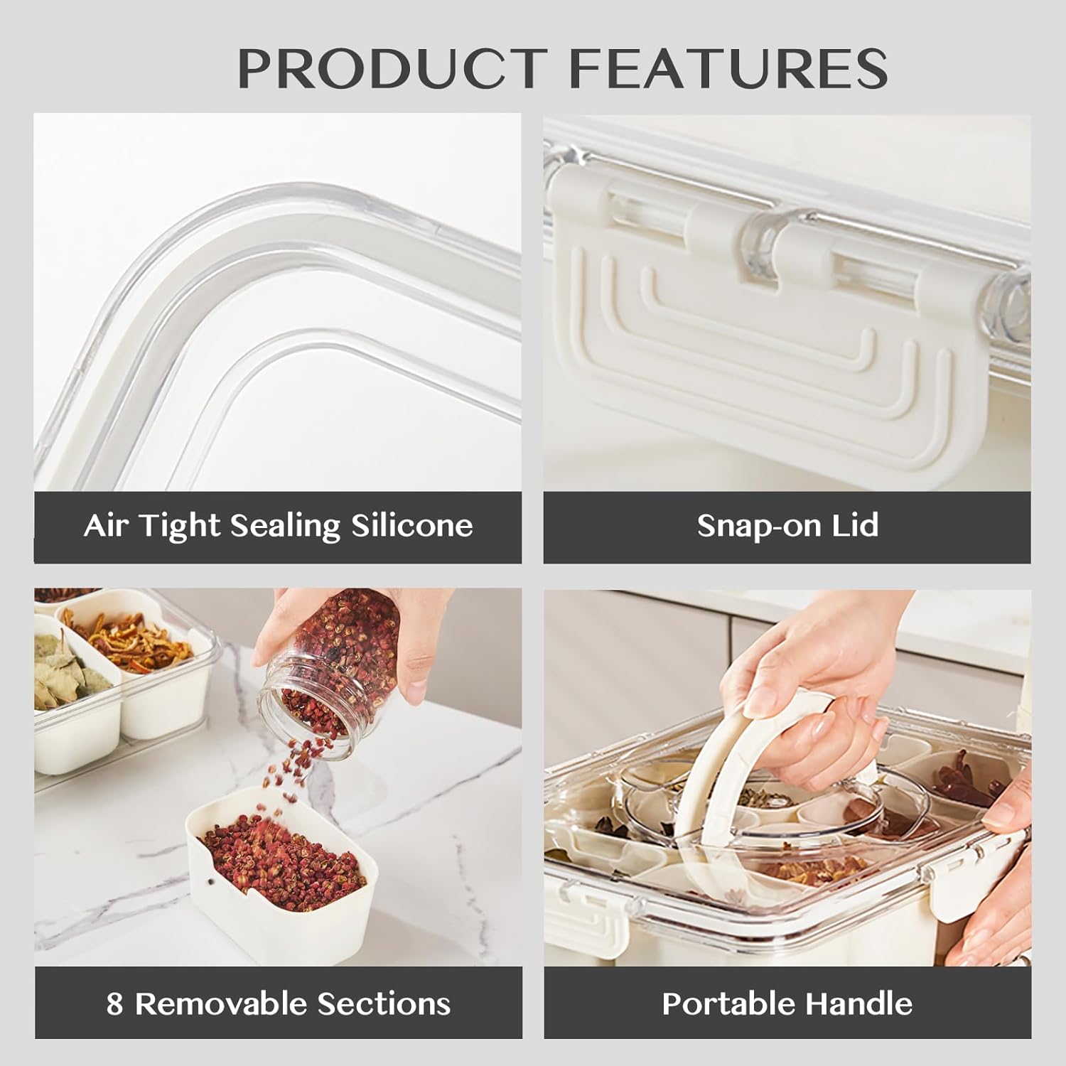 - 8 compartments to organize snacks Dive into snack time with snackle box container innovative design. Featuring 8 removable compartments and 4 forks, it ensures your treats stay organized and your flavors distinct. No more mixing and mingling—each section keeps your snacks pristine and ready to enjoy