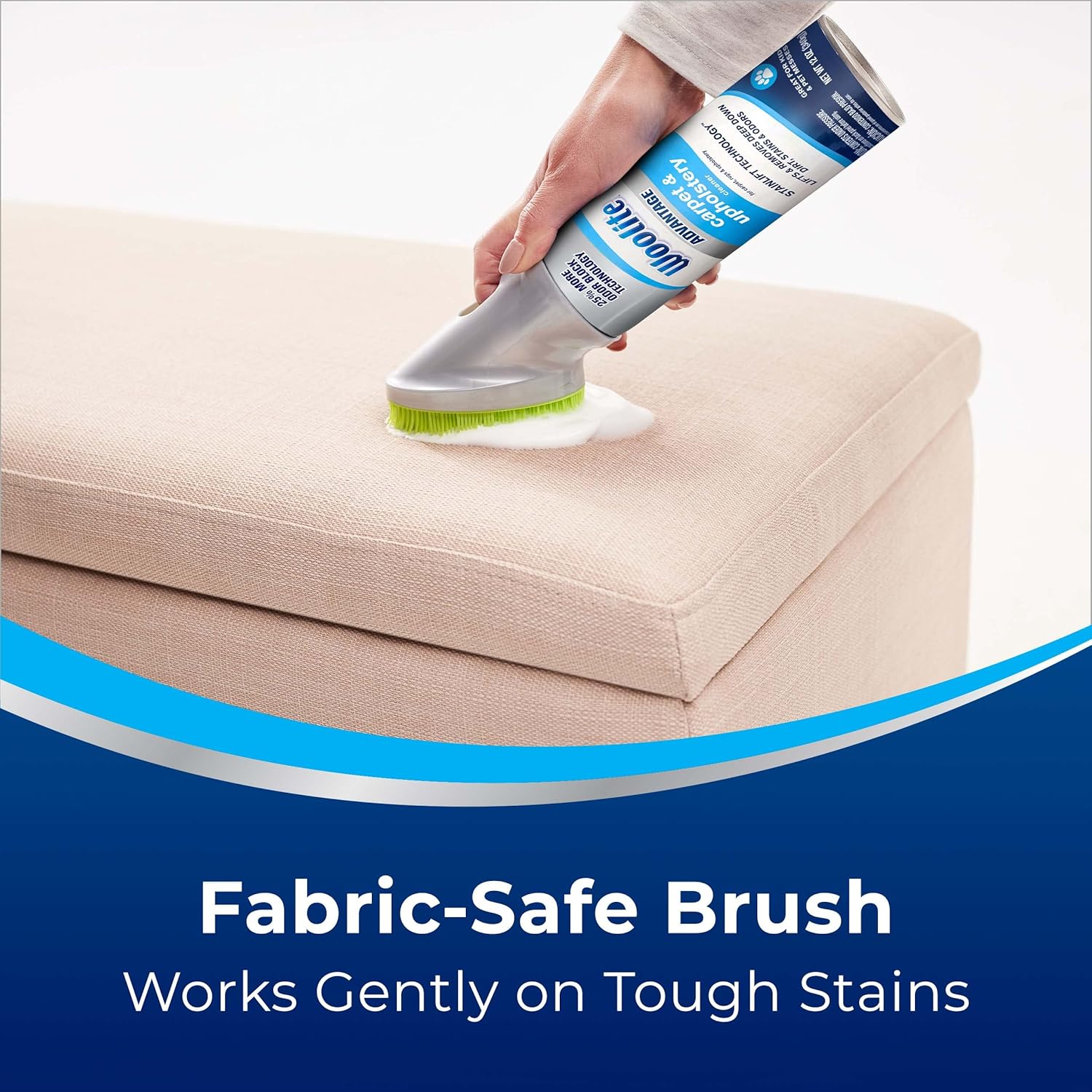 Features a rinseable, fabric-safe brush that gently scrubs away tough stains without soaking or saturating your upholstery.