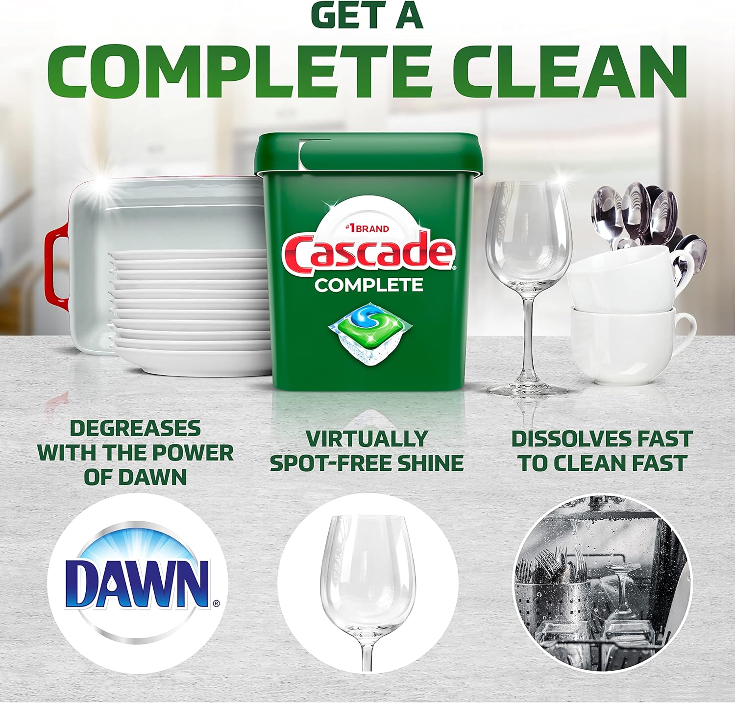 Get sparkling clean dishes with the trusted power of Cascade ActionPacs Dishwasher Pods. These convenient, pre-measured pods dissolve quickly to release the grease-fighting strength of Dawn, tackling even the toughest stuck-on messes.