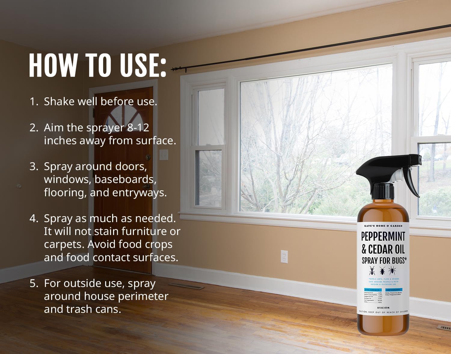 - Kate's Home & Garden Peppermint Oil Spray for Bugs, Ants, Insects, Spiders. Pesticide and Insecticide Indoor Repellent Pest Control with Cedarwood Oil (16oz, Natural, Pet Safe, Non Toxic)
