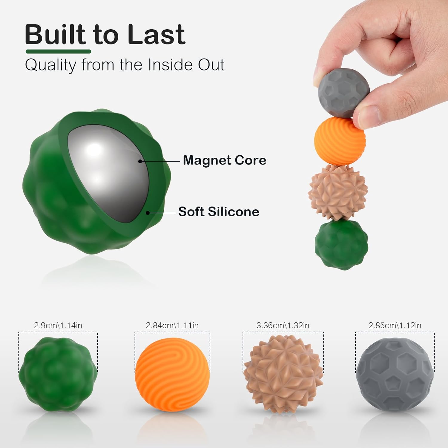 - Stress-Relieving Fidget Balls – Designed for adults and teens, this 4-pack of magnetic silicone fidget balls helps calm nerves, reduce anxiety, and improve focus with quiet, repetitive motions like squeezing and flipping