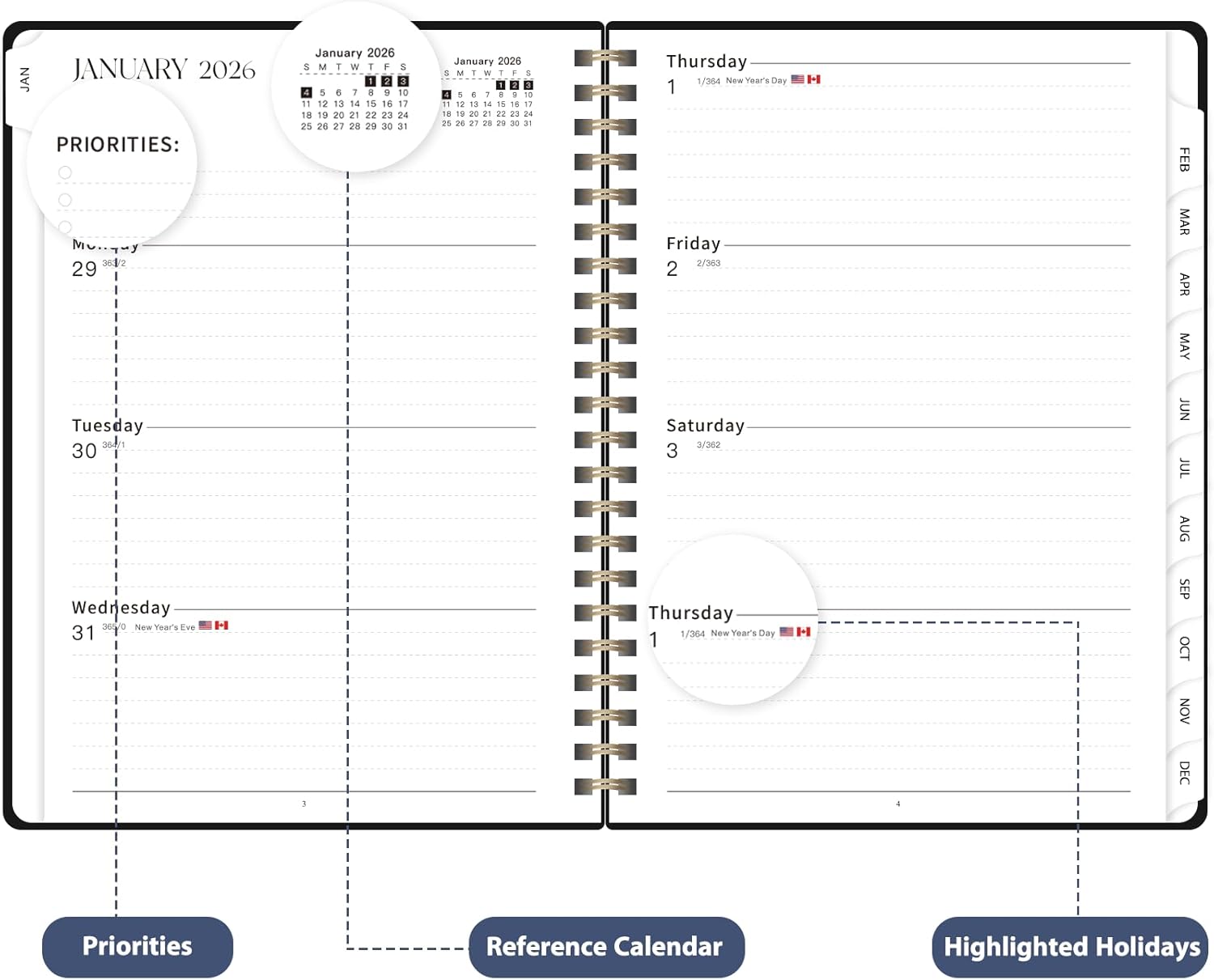2026 Planner, Weekly and Monthly Calendar Academic Planner, Jan 2026 - Dec 2026, Planning Agenda Book for Desk Accessories and School Supplies - A5 (6.3'' x 8.5'')