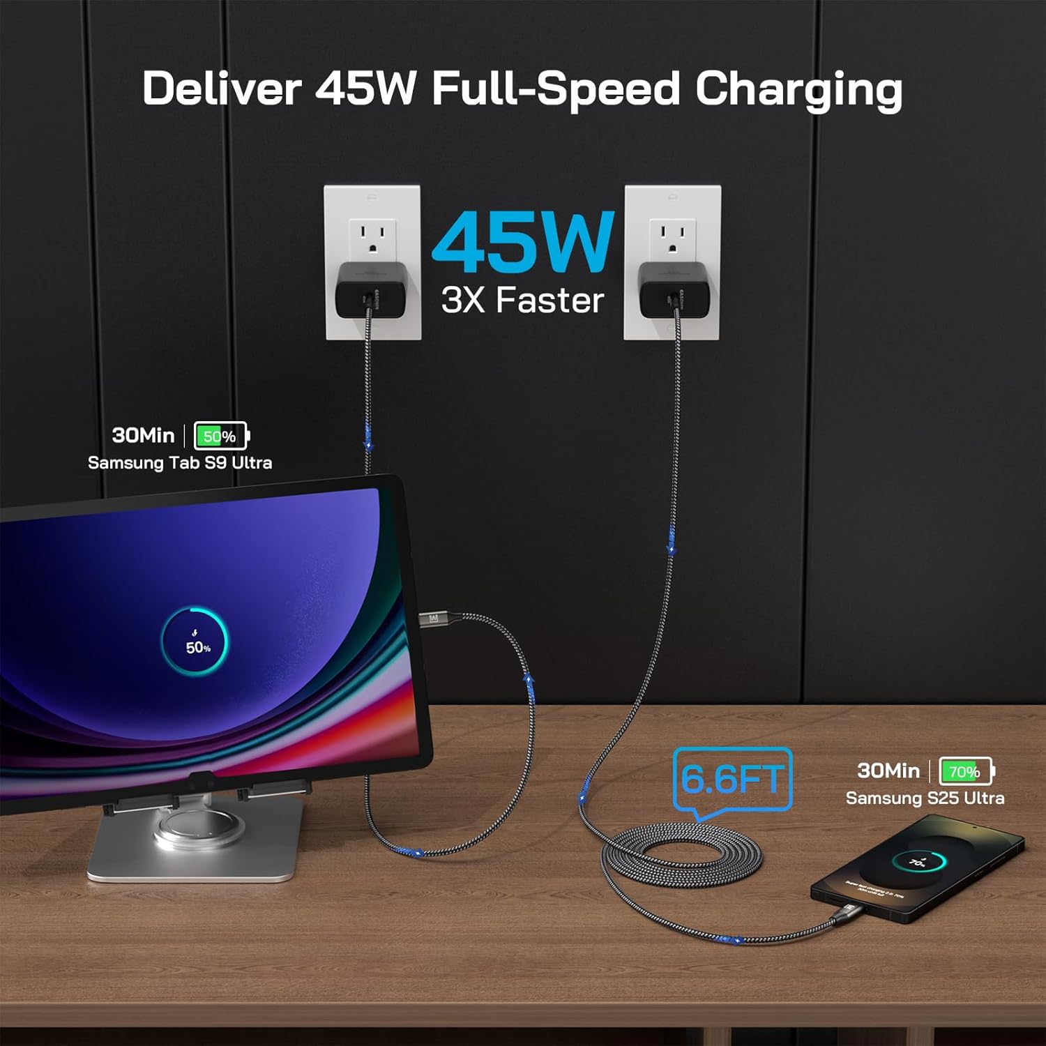 ![45W Super Fast Charger Type C, [2 Pack] 45 Watt USB-C Charger PD/PPS Wall Charging Block for Samsung Galaxy S25 Ultra/S25+/S25/S24/S23 Ultra/S23+/S22 Ultra/S22+/S20 Ultra, Tab S8(with 2X 6.6ft Cable)](http://apronmart.com/cdn/shop/files/71ty5xYMbTL._AC_SL1500.jpg?v=1763797657&width=1445)