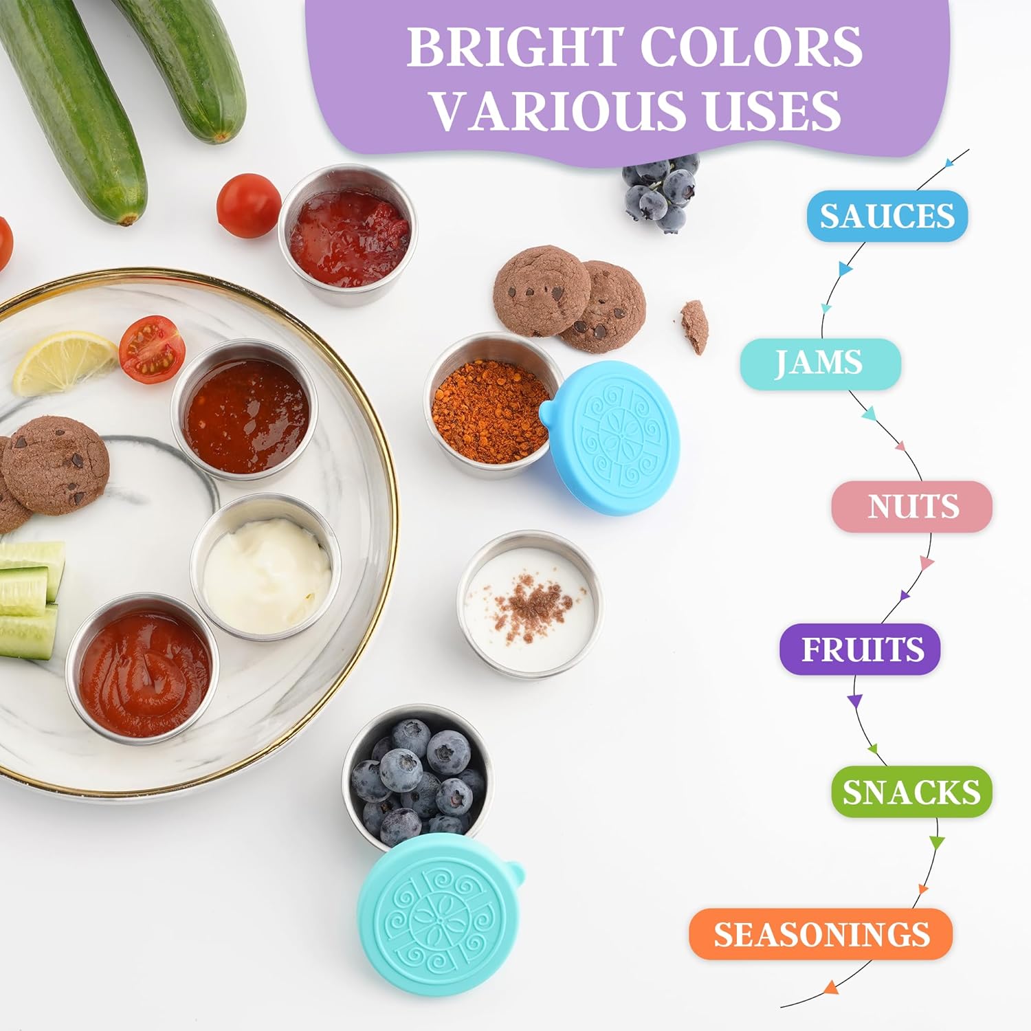 Easy-Open Colorful Lids: Soft silicone lids come in multiple colors for easy removal and quick sauce identification.