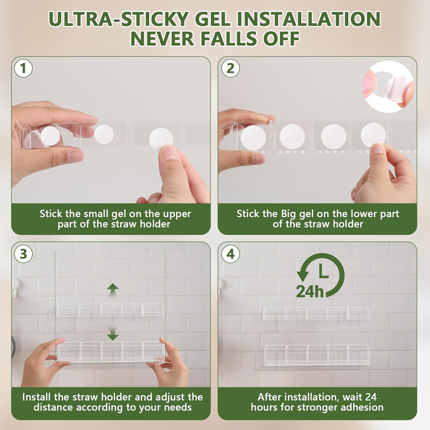 9.5” Large Acrylic Straw Holder for Cabinet Door - Reusable Tumbler Straw Organizer Storage, Small Kitchen Accessories Container, Ultra Sticky Cupboard Door Mounted (Transparent)
