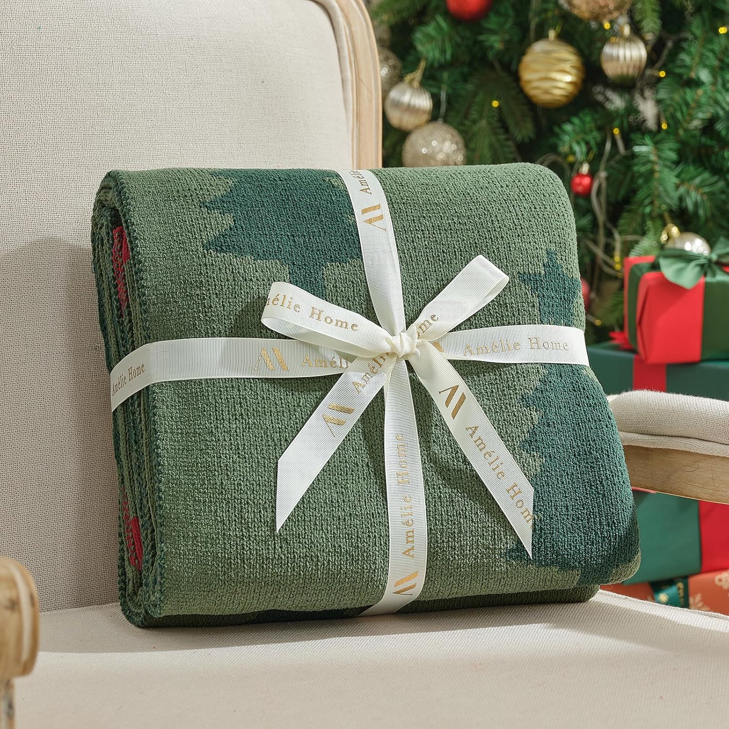 - Elegant Christmas Tree Design- Celebrate the season with a classic green throw adorned with timeless Christmas Tree patterns and a bold red border. The rich jacquard knit adds depth and texture, creating a cozy yet stylish accent that perfectly complements your holiday décor.