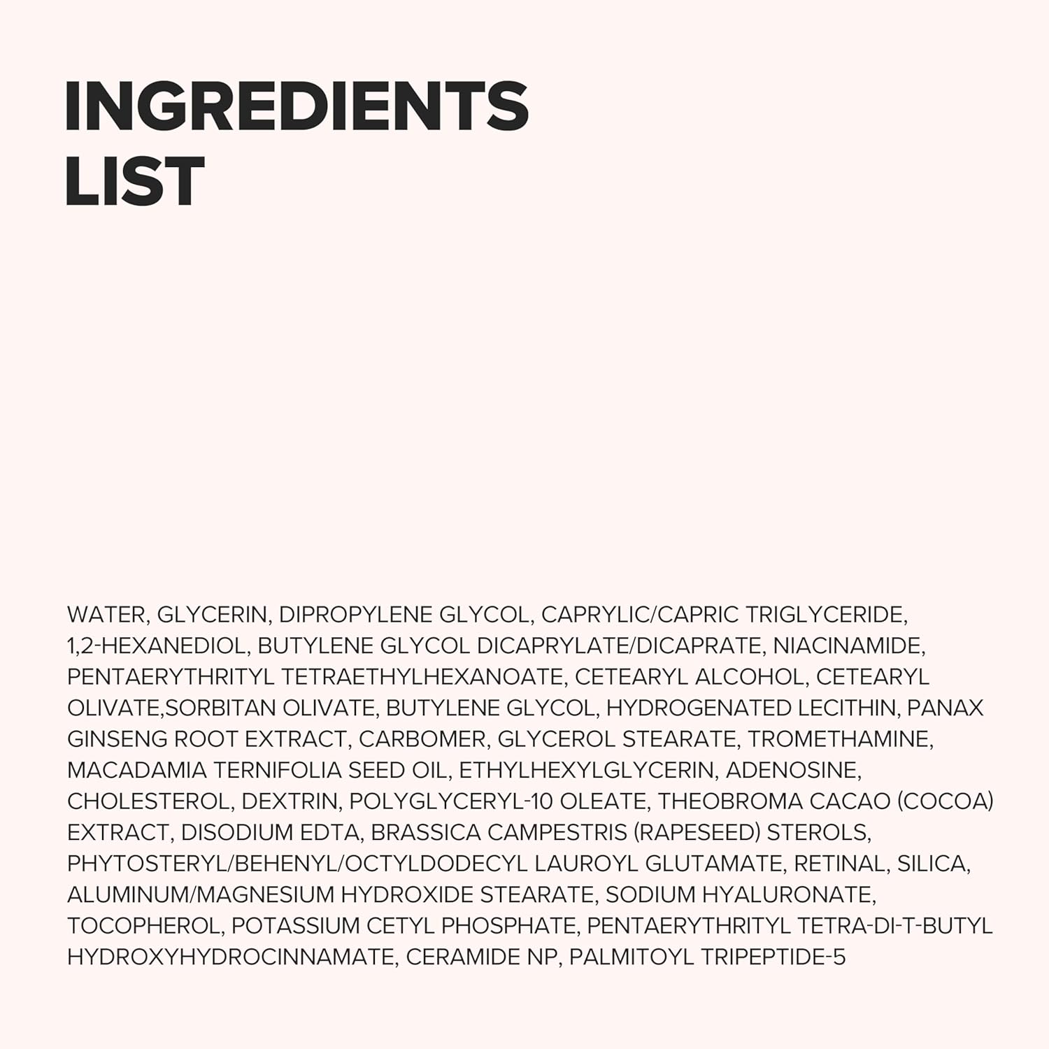 - Key Ingredients: Ginseng Extract for skin elasticity and protection, Retinal for reduction of wrinkles and Niacinamide for brightness