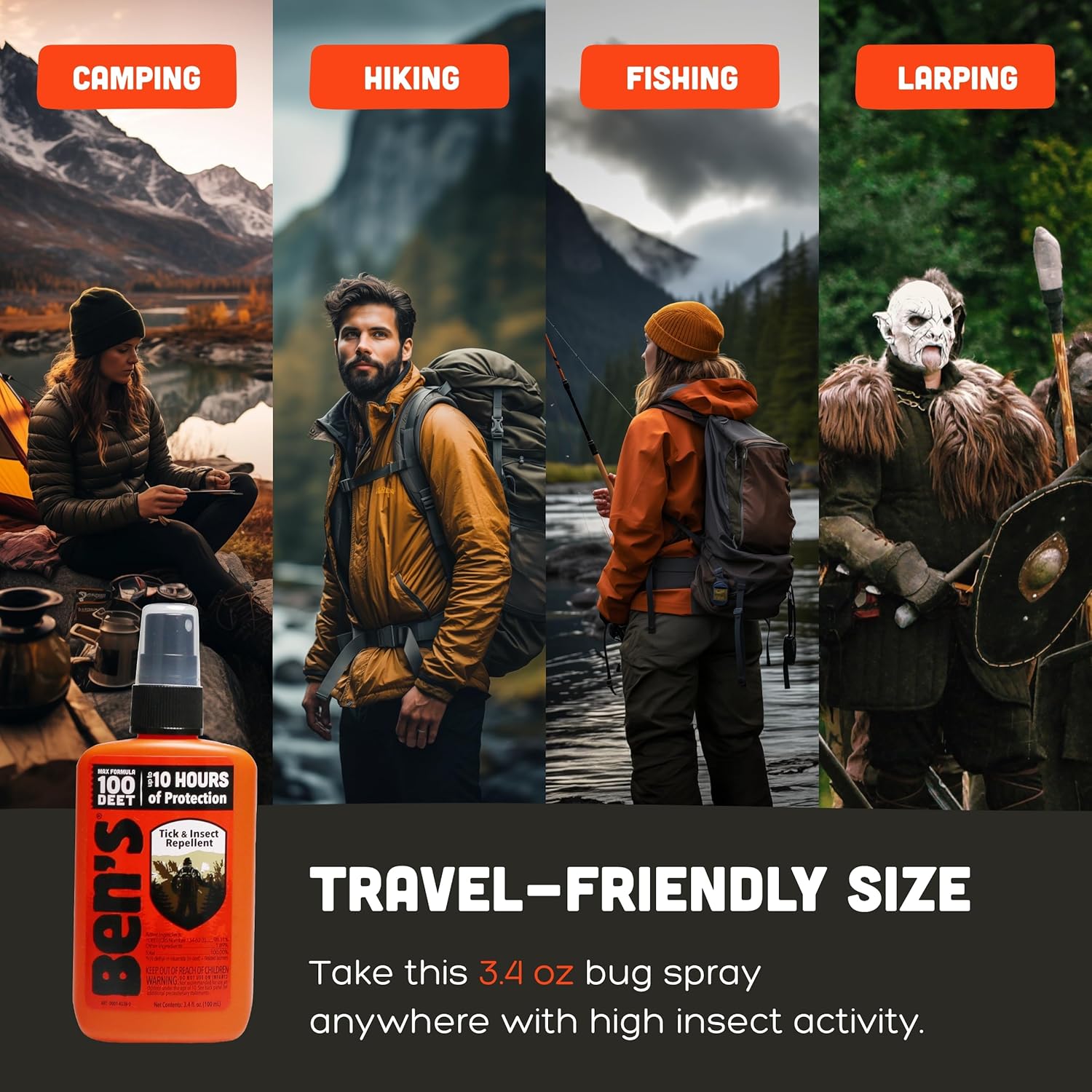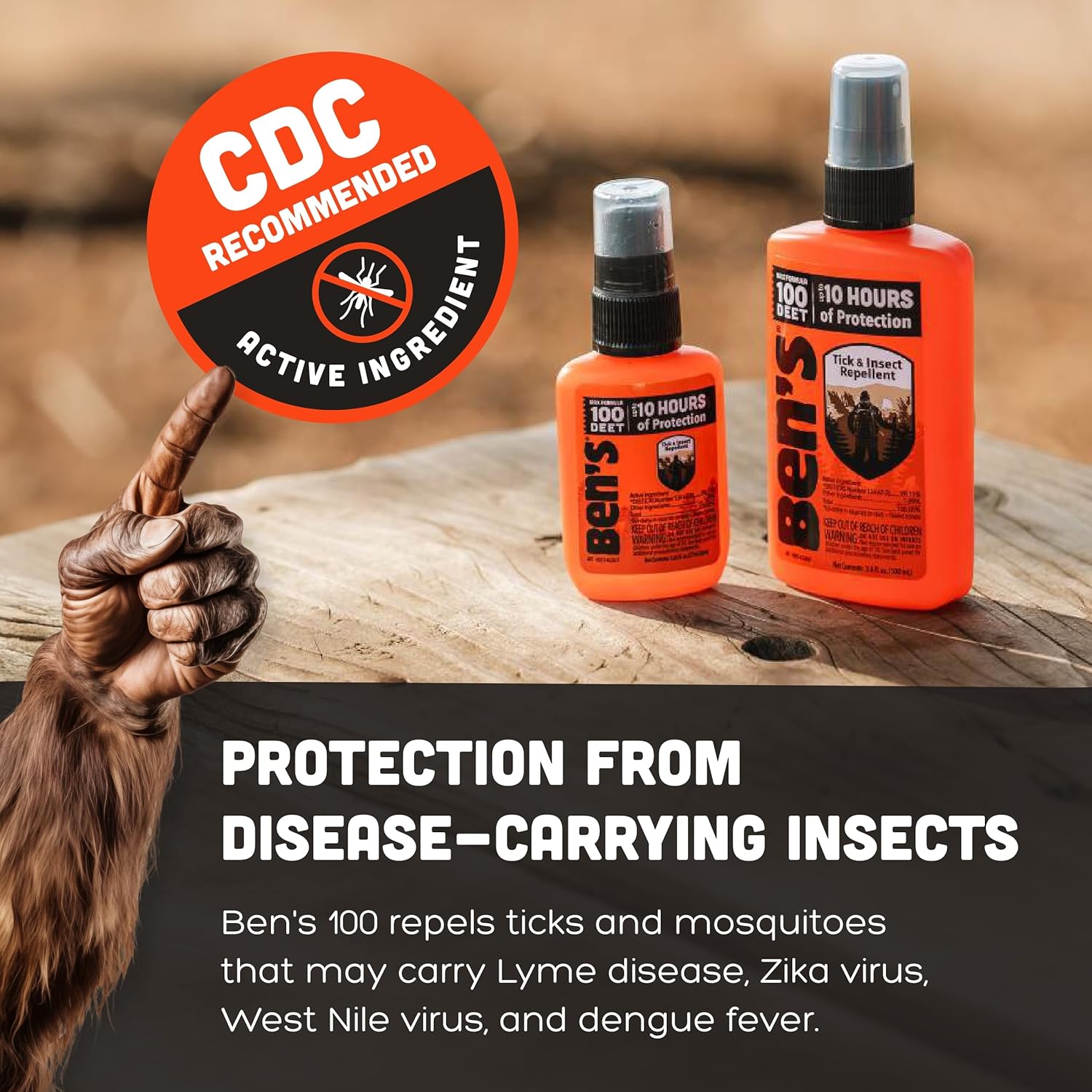 Ben's 100 Tick & Insect Repellent - Alcohol-Free DEET Insect Repellent Pump Spray - Offers 10 Hours of Protection for Adults & Children -3.4 Fl Oz (2 Pack)