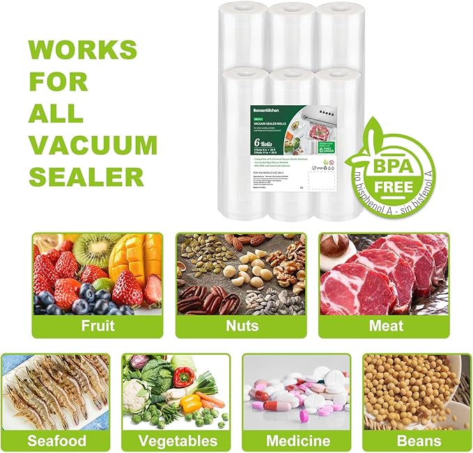 - CUSTOMISED-SIZE FOOD VACUUM BAGS: Bonse kitchen vacuum sealer roll is compatible with all major brand vacuum sealers, you can make a customized-size vacuum bag in a few seconds.