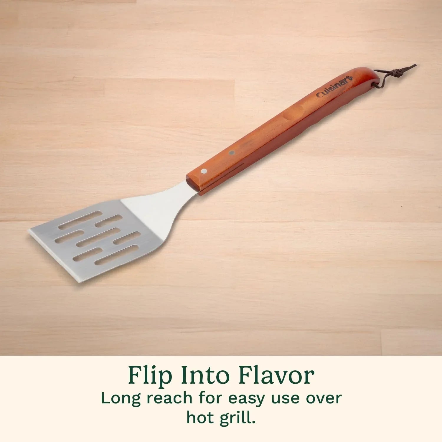 SAFE LONG REACH: Extra-long utensils allow for safe handling of food over a hot grill, making outdoor cooking more enjoyable.