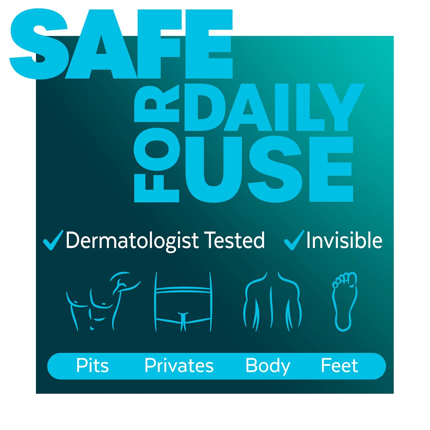 - USE FOR PITS, PRIVATES, BODY AND FEET: Use it anywhere you want to tackle odor, including your pits, privates, body, and feet. Feel fresh and confident throughout the day.