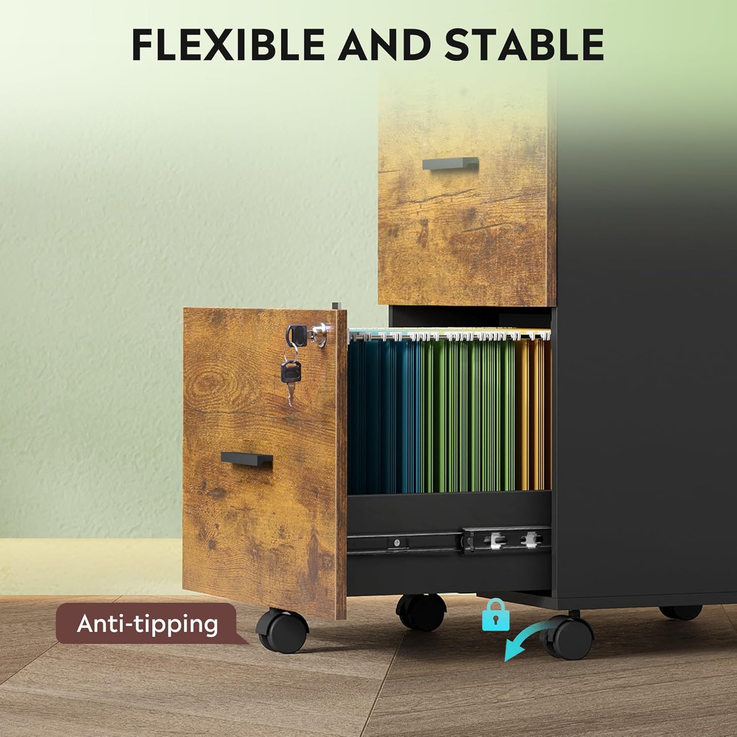 - ADD MORE MOBILITY: Rolling on 5 rotatable wheels, including 2 front casters with braking function and 1 center caster to prevent tipping, this filing cabinet can keep stable or move freely and safely according to your need.