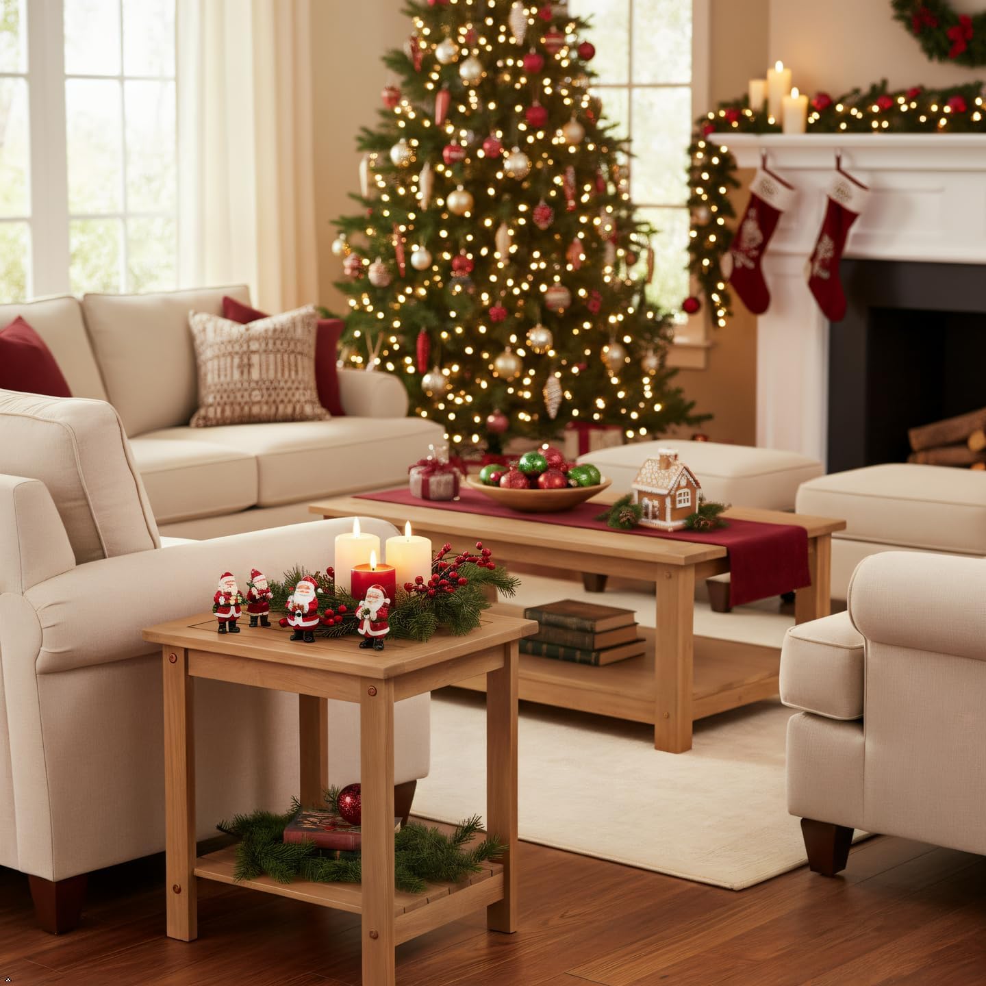 Double Adirondack Side Table, Weather-Resistant Rectangular End Table for Patio, Garden, Lawn, and Living Room. Ideal as a Stylish Indoor and Outdoor Side Table Companion, Natural